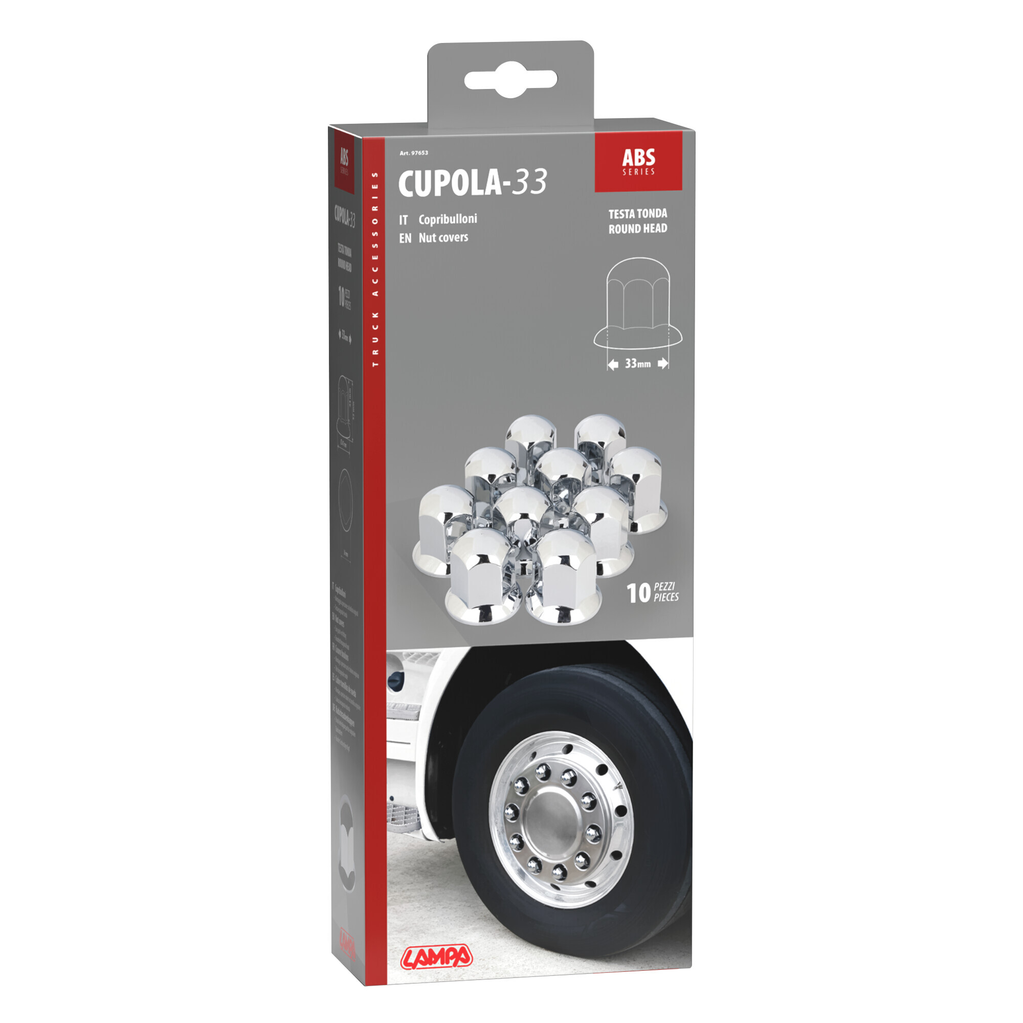 Set 10 copribulloni in ABS – Ø 33 mm – Cromo