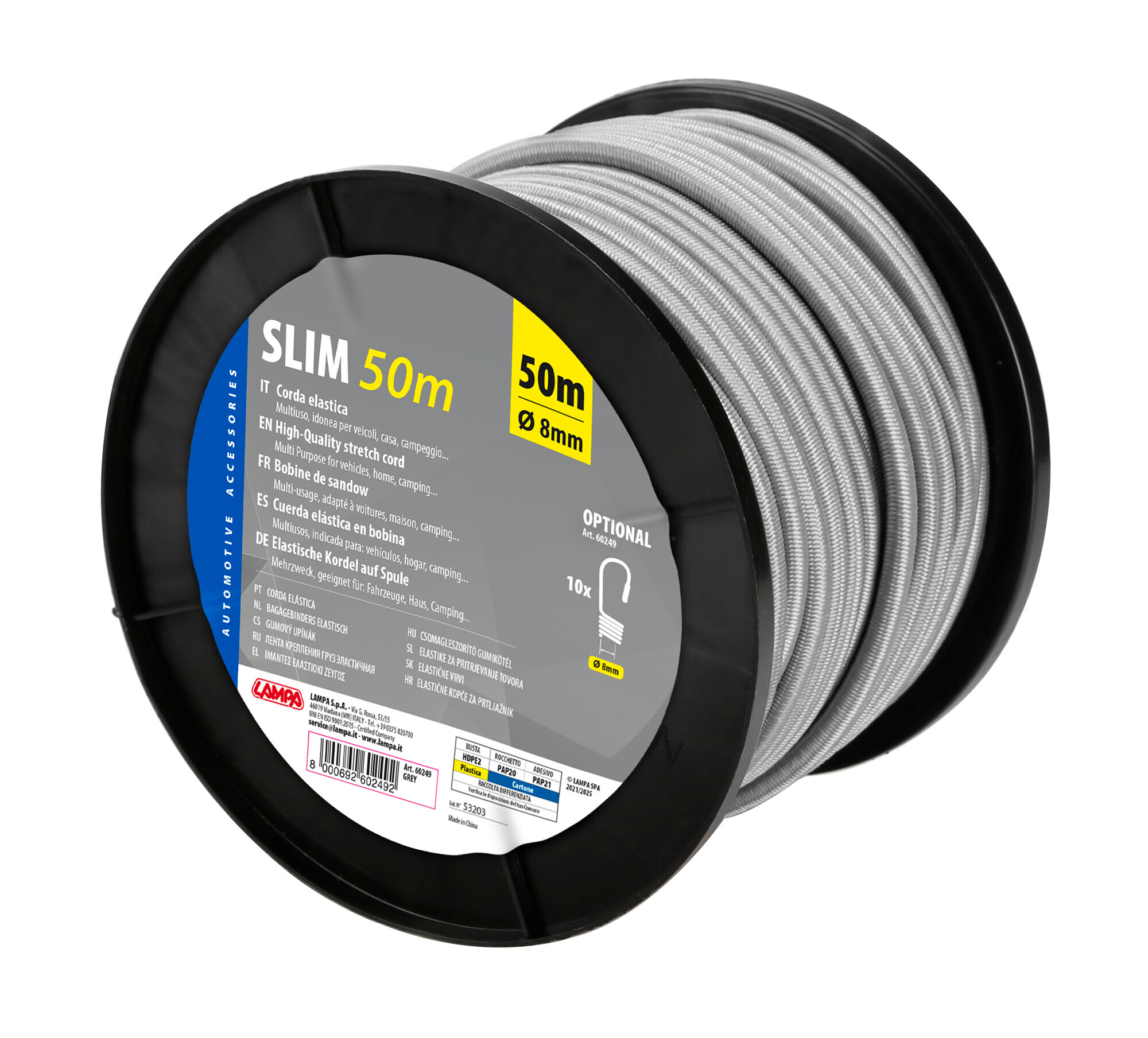 Corda elastica in bobina – Ø 8 mm – 50 m – Grigio