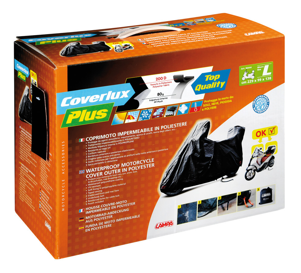 • Con sagomatura per moto/scooter con parabrezza e bauletto