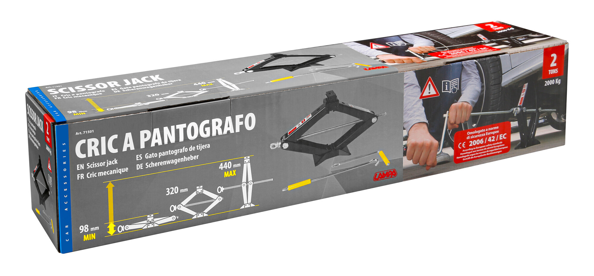 Cric idraulico a carrello – 2.000 kg – Scatola