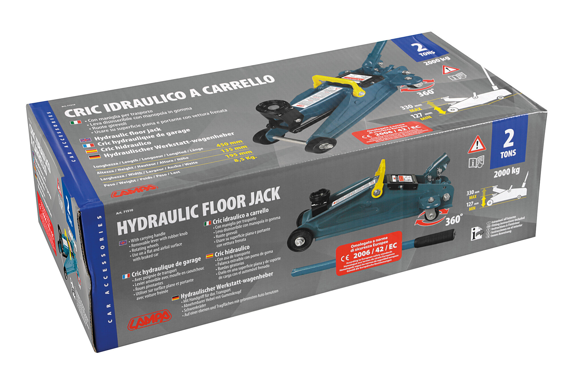 Cric idraulico a carrello – 2.000 kg – Scatola