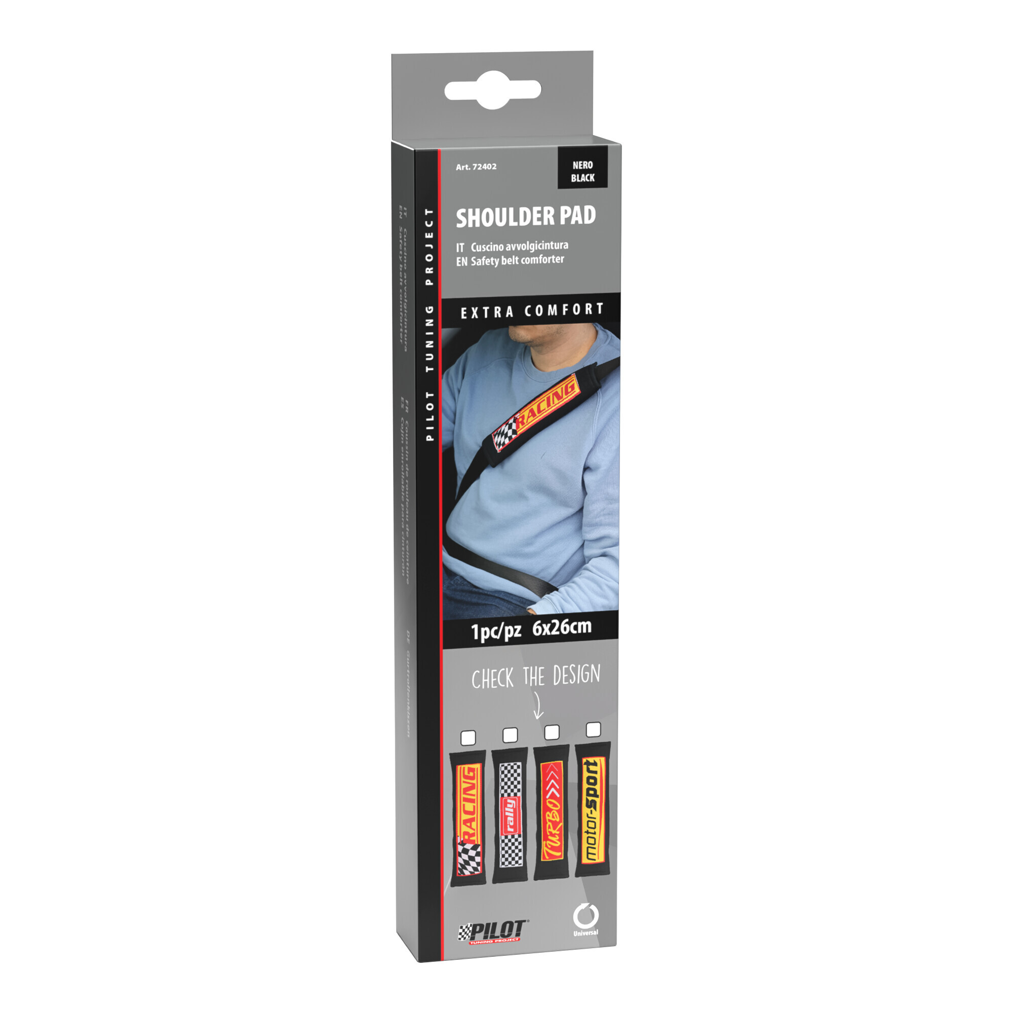 Doppia imbottitura, chiusura velcro. Scritte assortite: Rally, Racing, Motorsport, Turbo