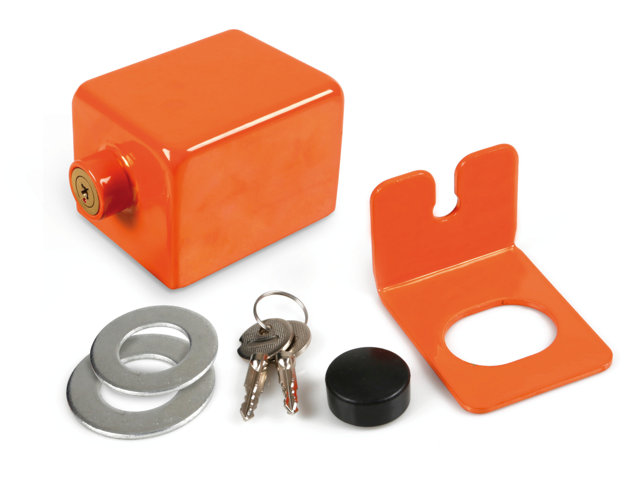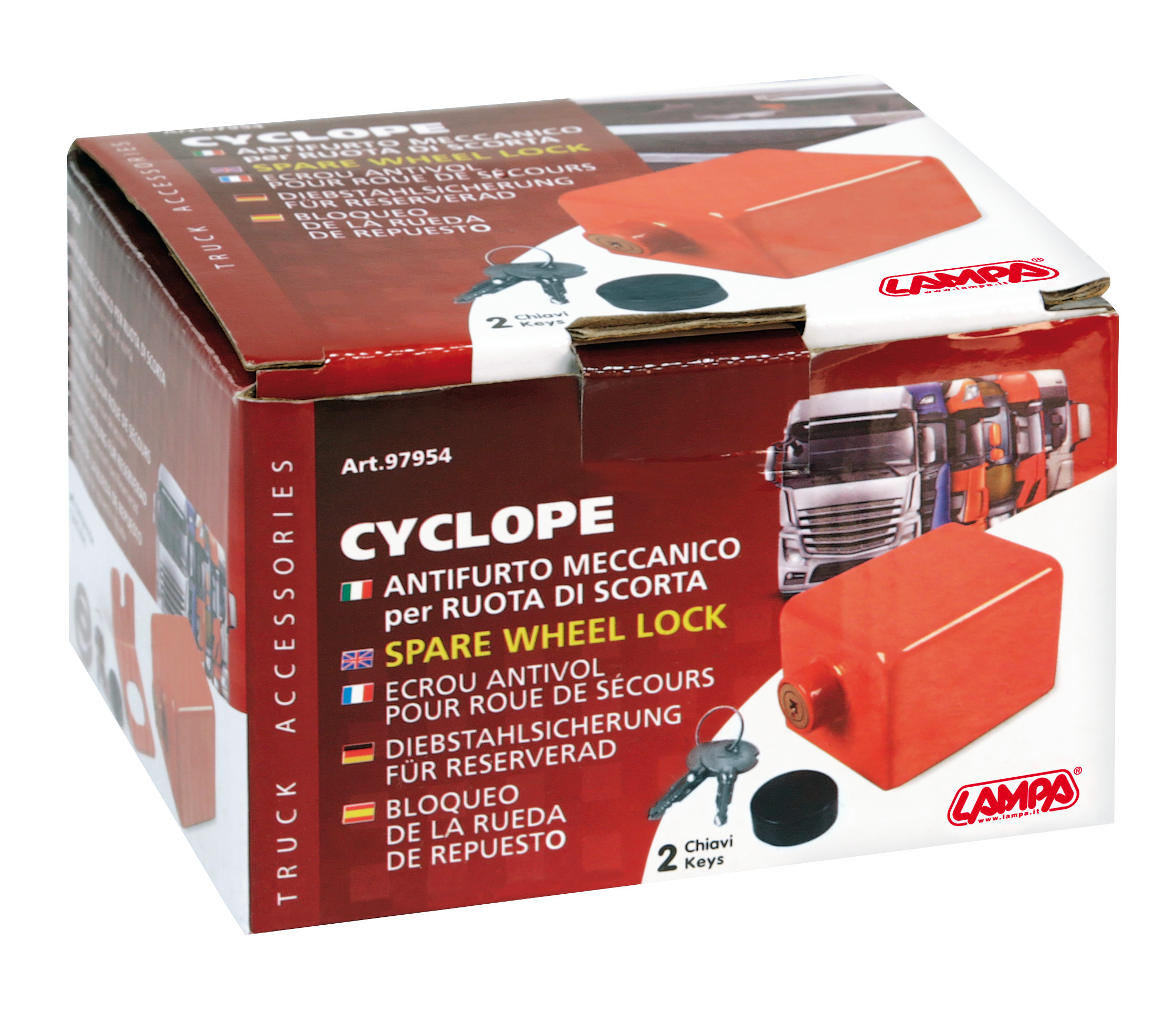 Previene il furto della ruota di scorta. Acciaio zincato e verniciato. Doppia chiave. Con copri serratura.