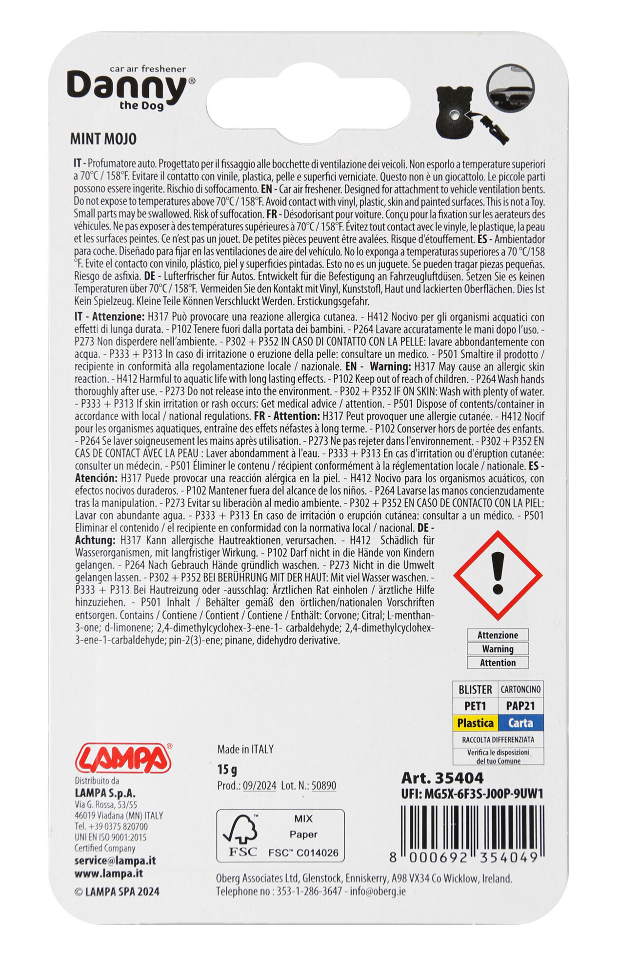 Danny the dog, deodorante per abitacolo – Mint Mojo