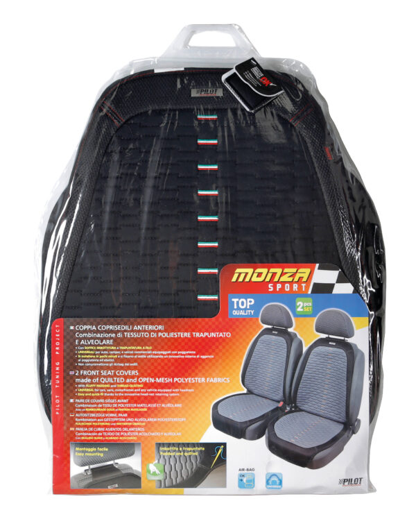 Monza, coppia coprisedili anteriori in tessuto alveolare di poliestere e trapuntato – Nero