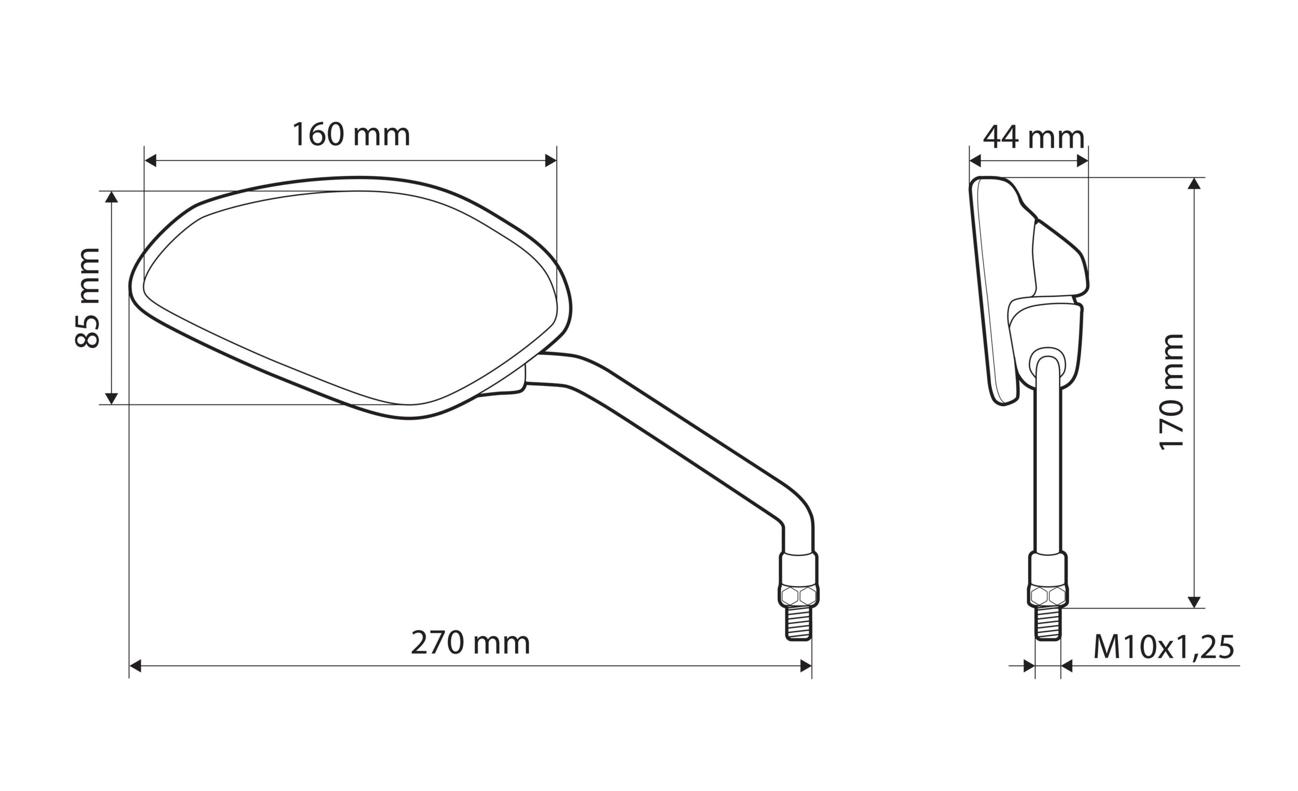 Estensore e sollevatore specchi moto – Filetto M10 destro