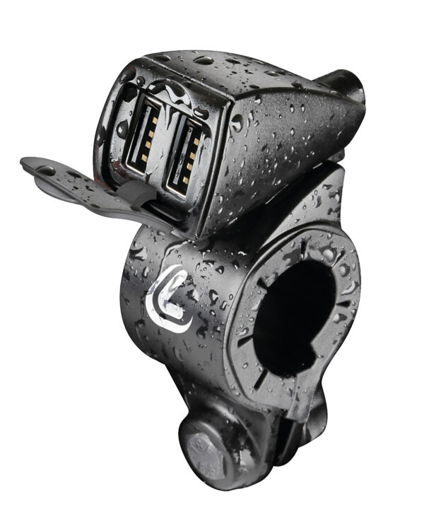 Usb-Fix Trek, doppio caricatore usb resistente all’acqua, fissaggio a manubrio – Ultra Fast Charge – 5400 mA – 12/24V