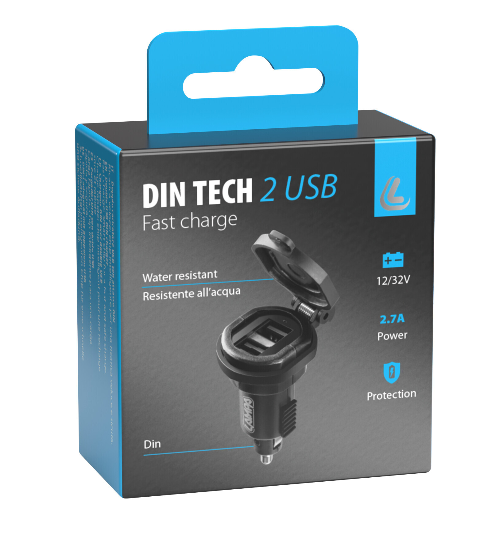 Din-Tech, caricabatteria Din 2 porte Usb – Fast Charge – 2700 mA – 12/32V