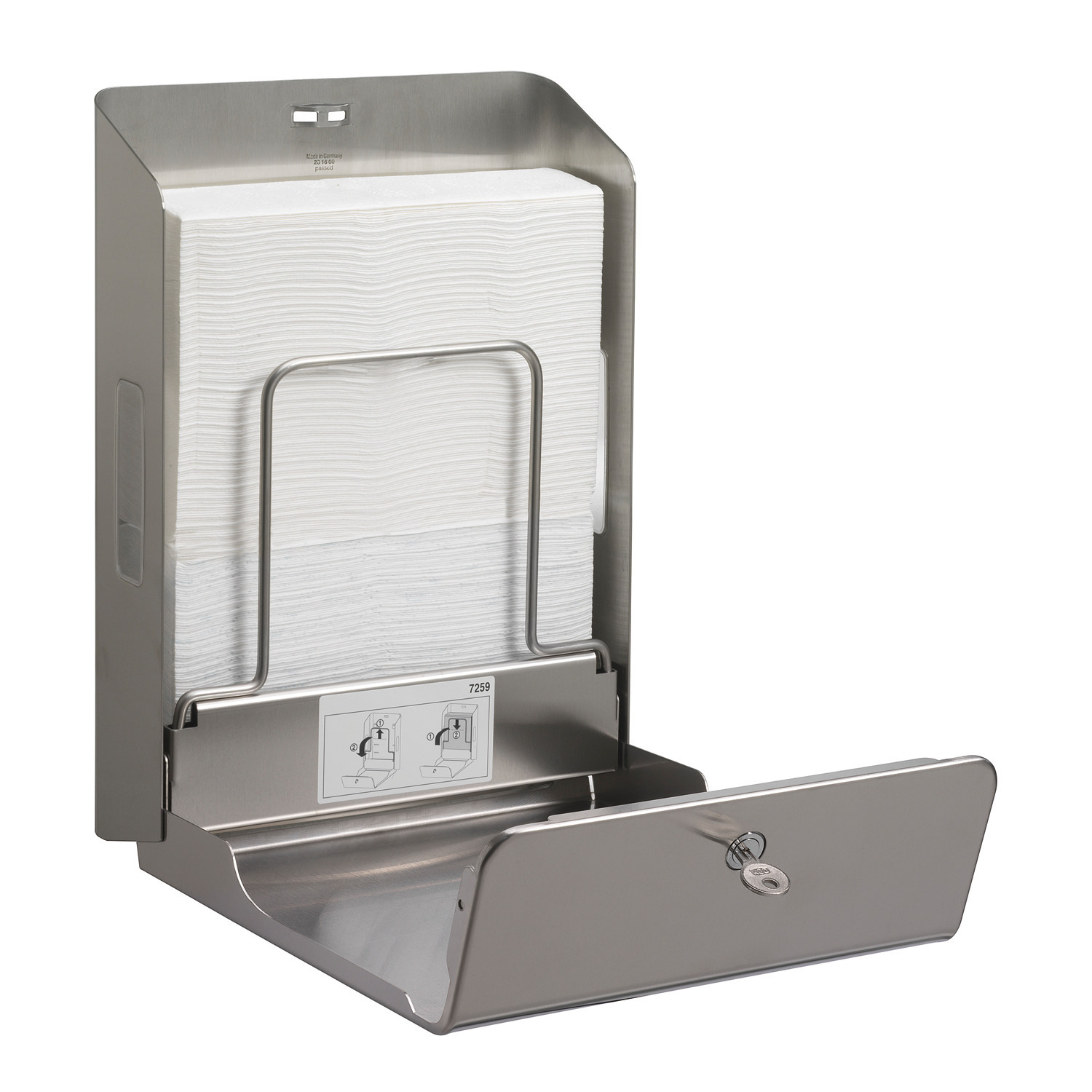 Ideale per erogare singoli fogli di asciugamani in carta intercalati, senza contatto con il dispenser, per di ridurre la contaminazione e la diffusione dei batteri. Completo di serratura