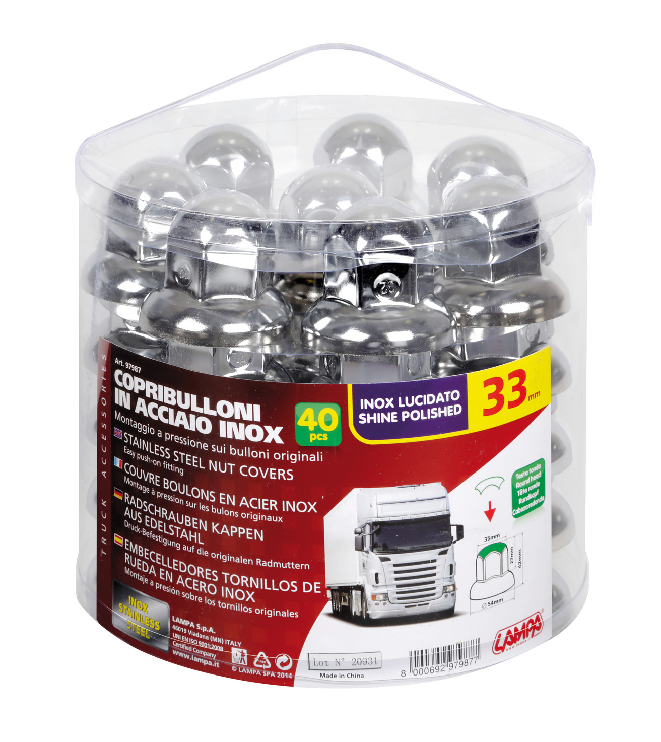 Dome, Set 40 copribulloni testa tonda in acciaio inox – Ø 33 mm – Cromo
