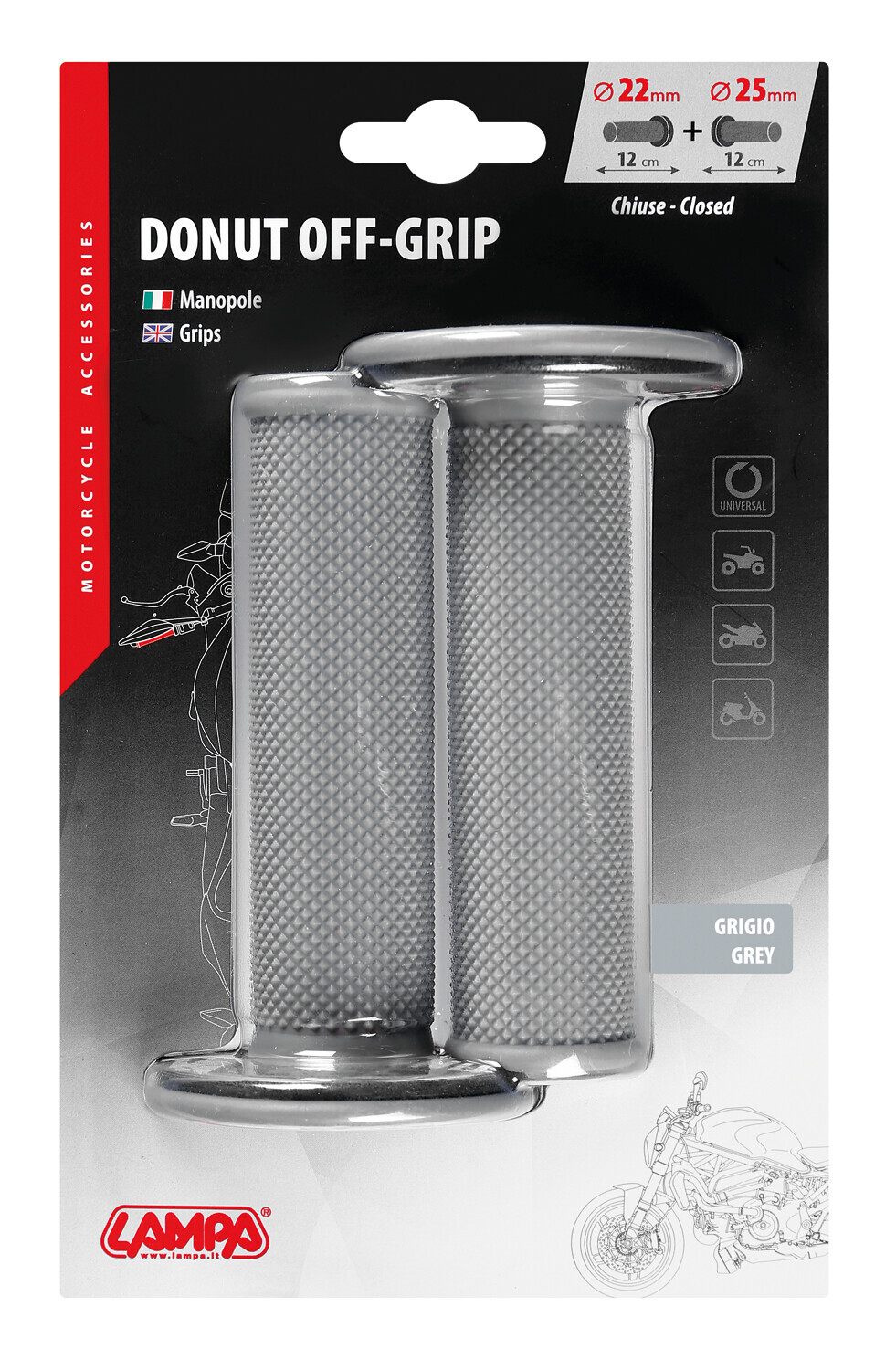• Adatte per moto, scooter e quad con impugnatura standard