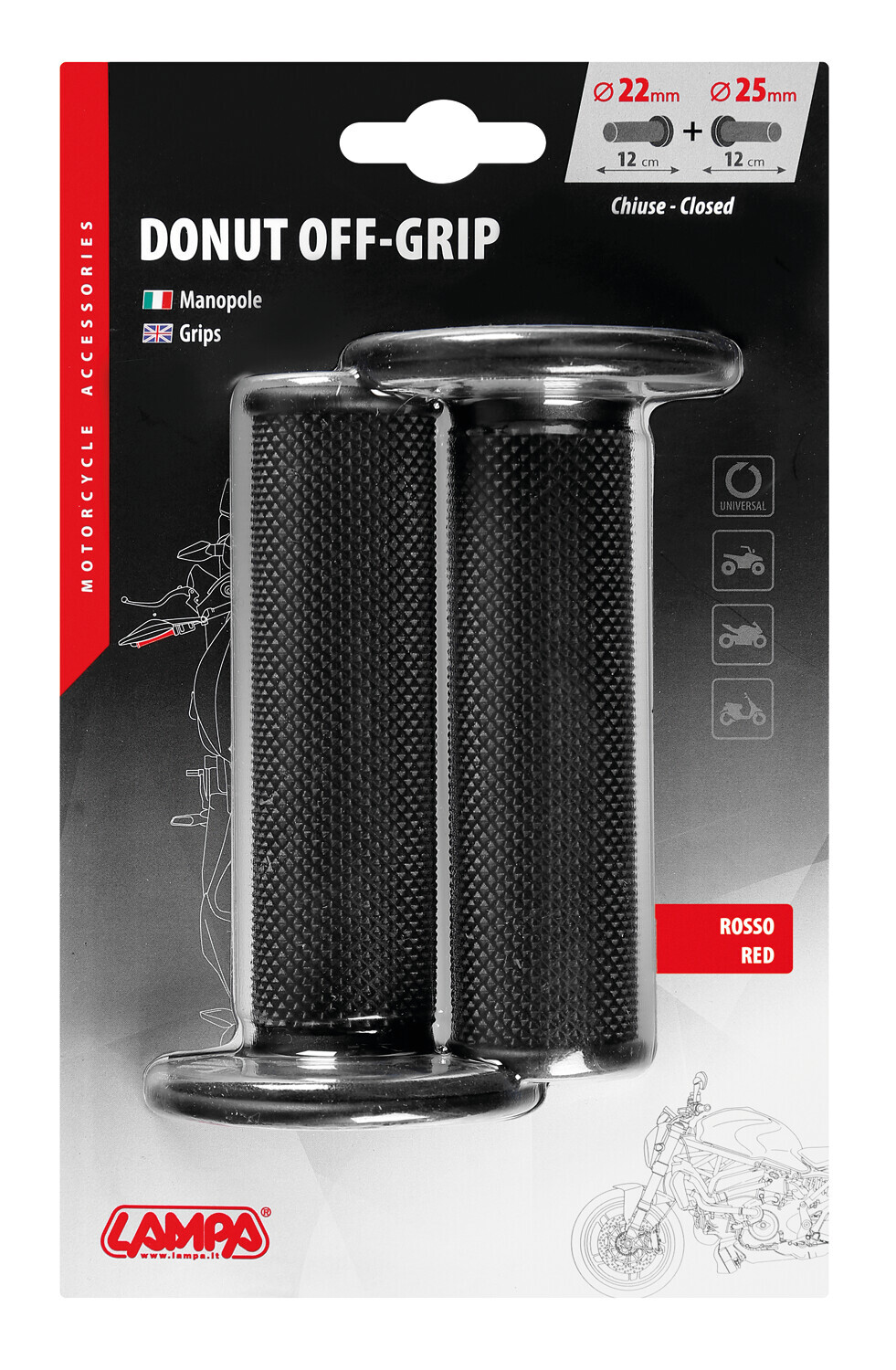 • Adatte per moto, scooter e quad con impugnatura standard