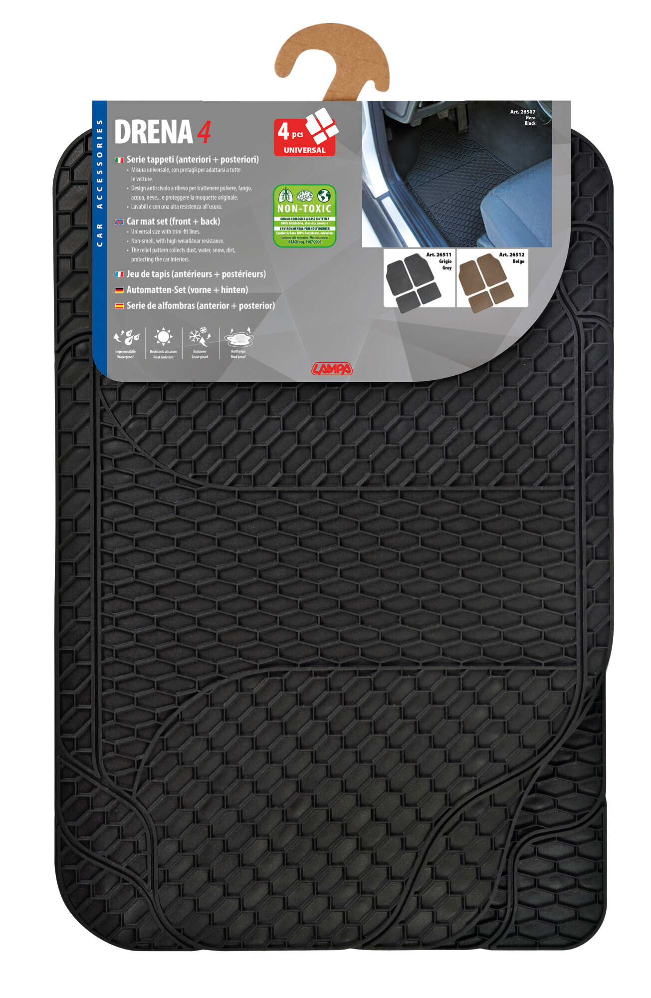 Drena Gomma 4, serie tappeti universali 4 pezzi