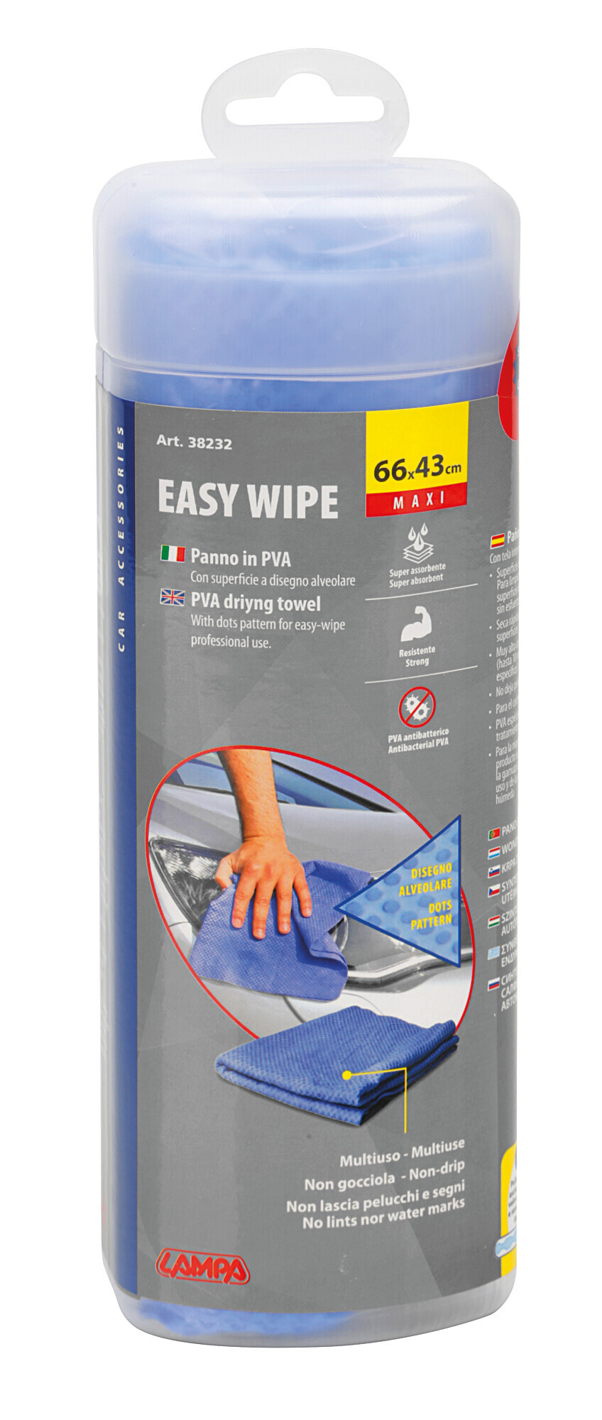 • Superficie a disegno alveolare per pulire e asciugare le superfici più velocemente e senza sforzo.