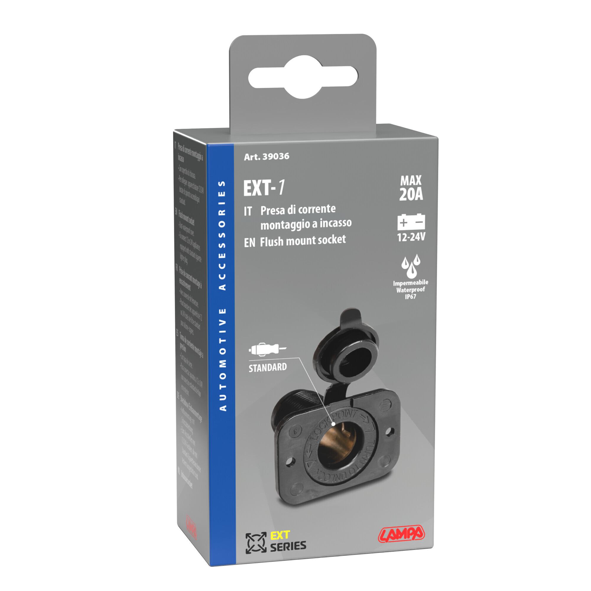 Ext-10, presa di corrente Safe Lock, 12/24V