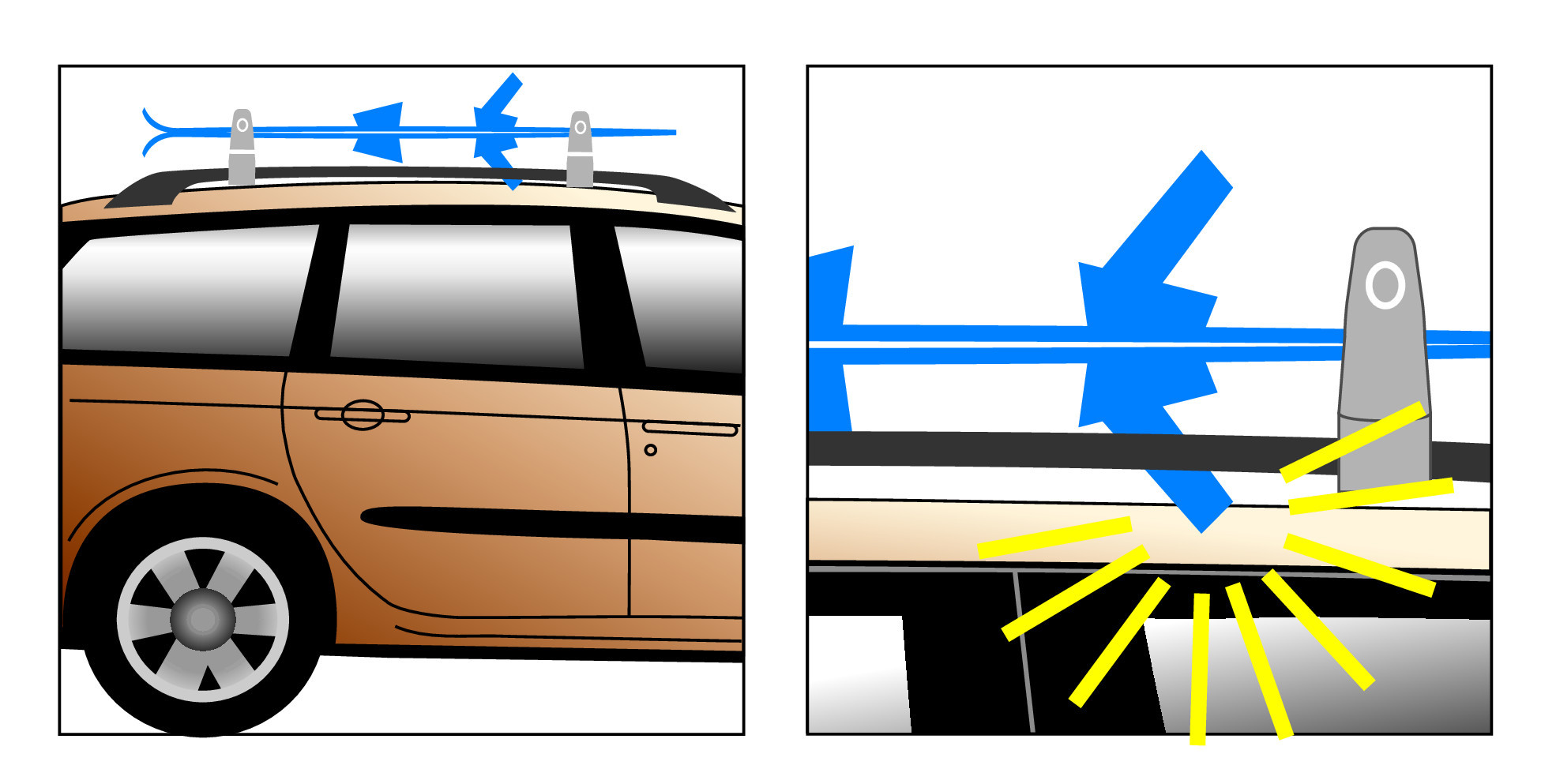 Indispensabile quando le barre porta tutto sono a profilo basso (poco distanti dal tetto); oppure quando gli sci vengono trasportati in modo sovrapposto e gli attacchi sono rivolti anche verso il basso.
