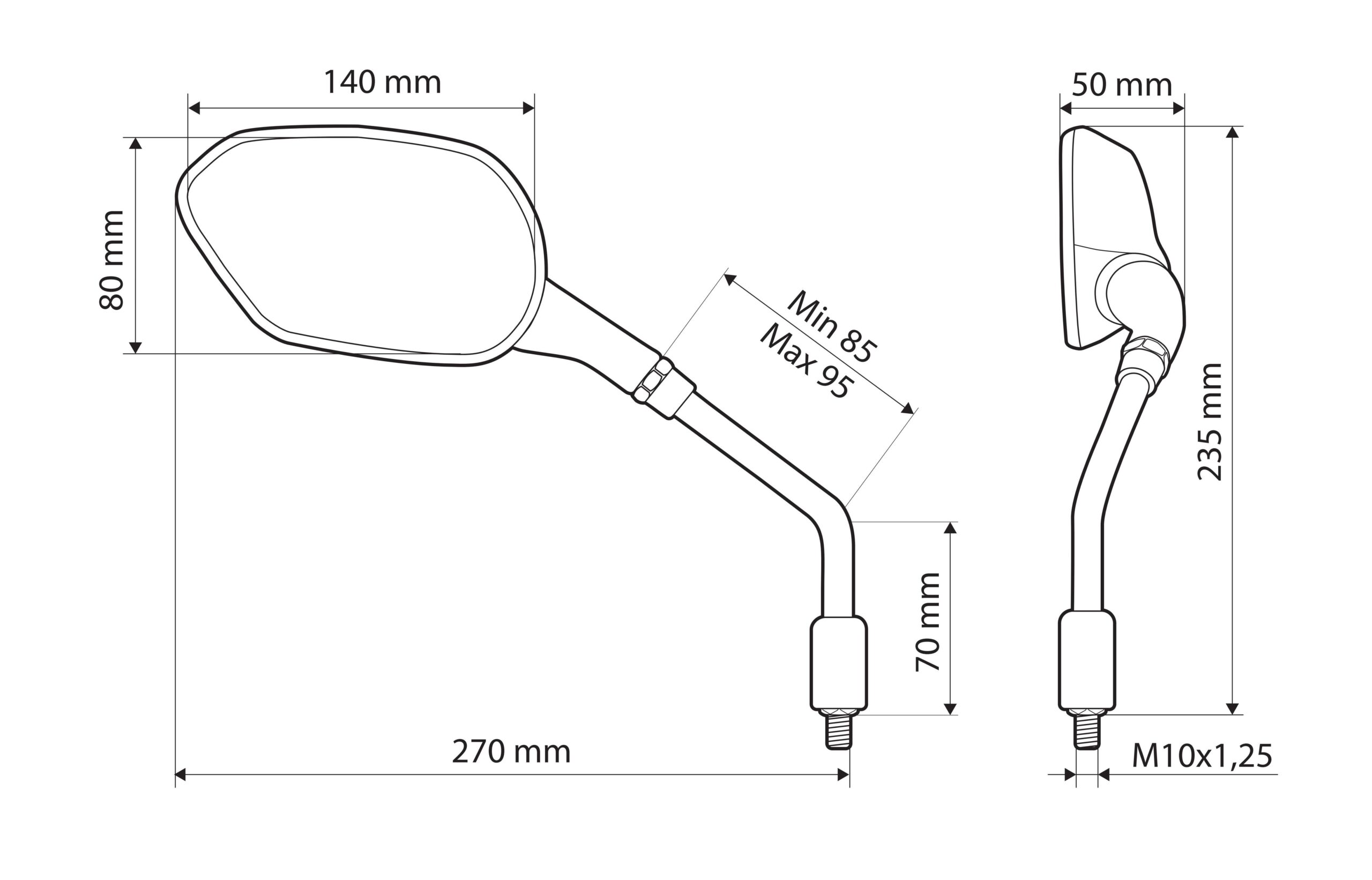 Estensore e sollevatore specchi moto – Filetto M10 sinistro