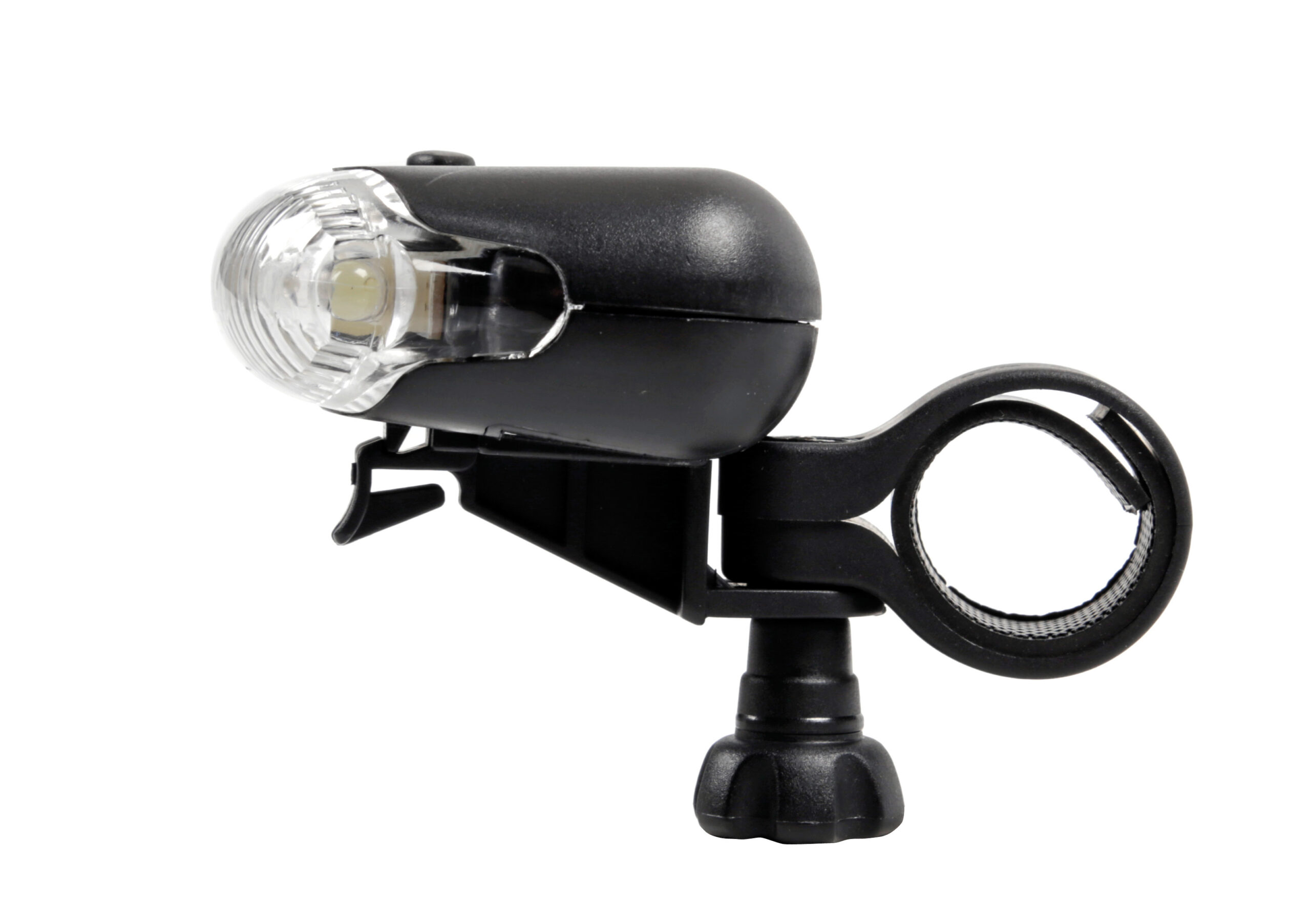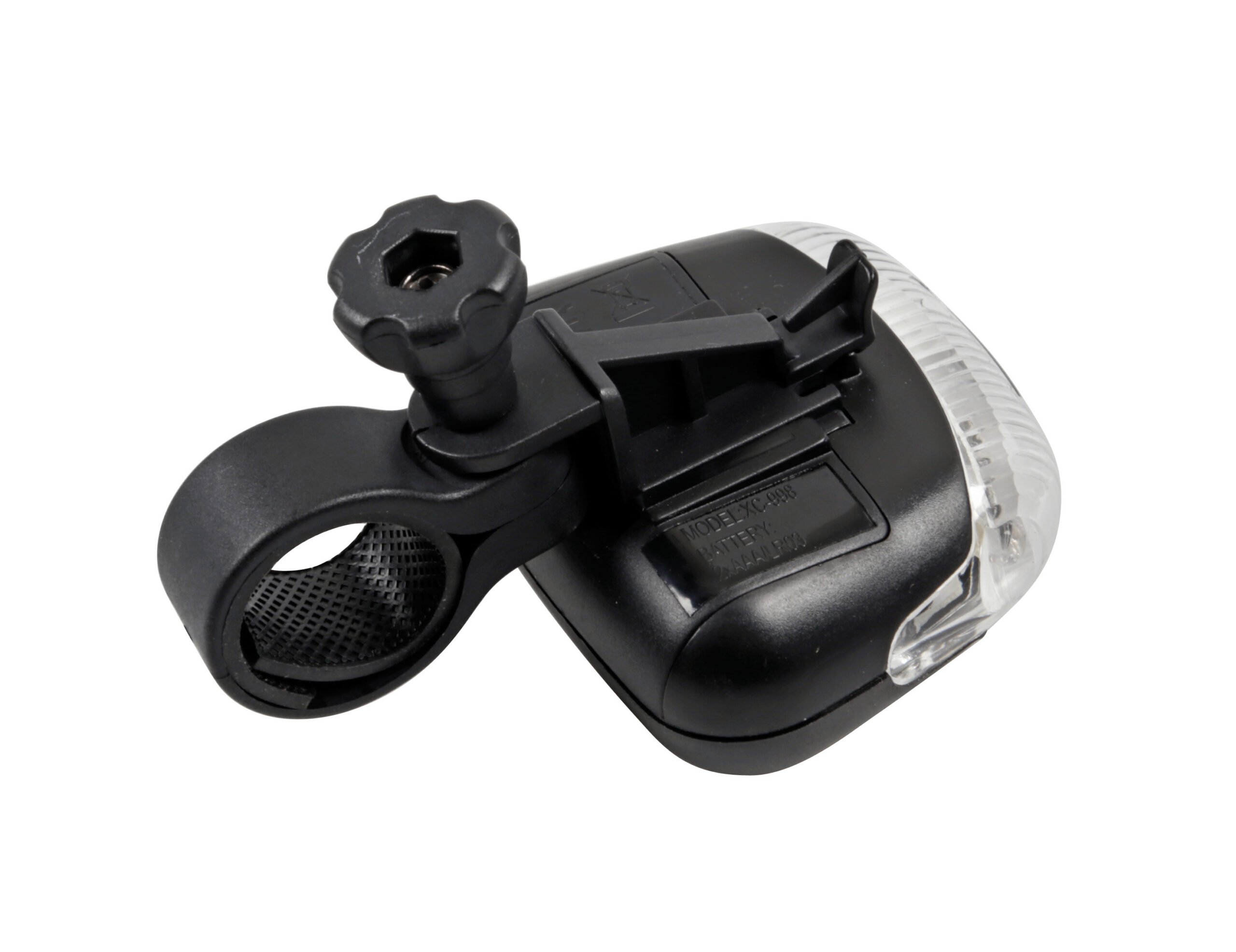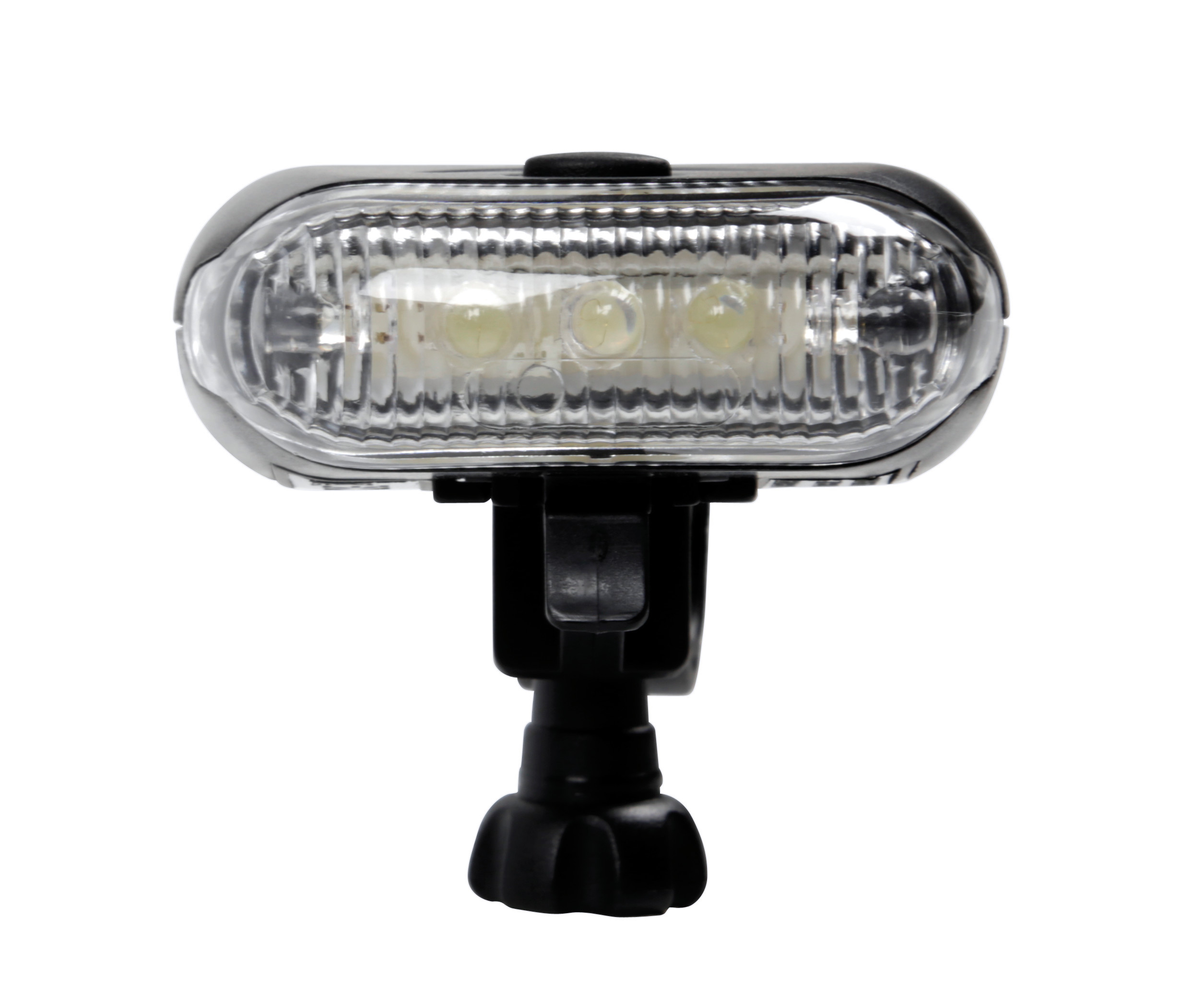 3 funzioni: luce fissa, lampeggiante, lampeggiante rapido. Staffa di fissaggio a innesto e disinnesto rapido. Funzionamento a batterie (non fornite)