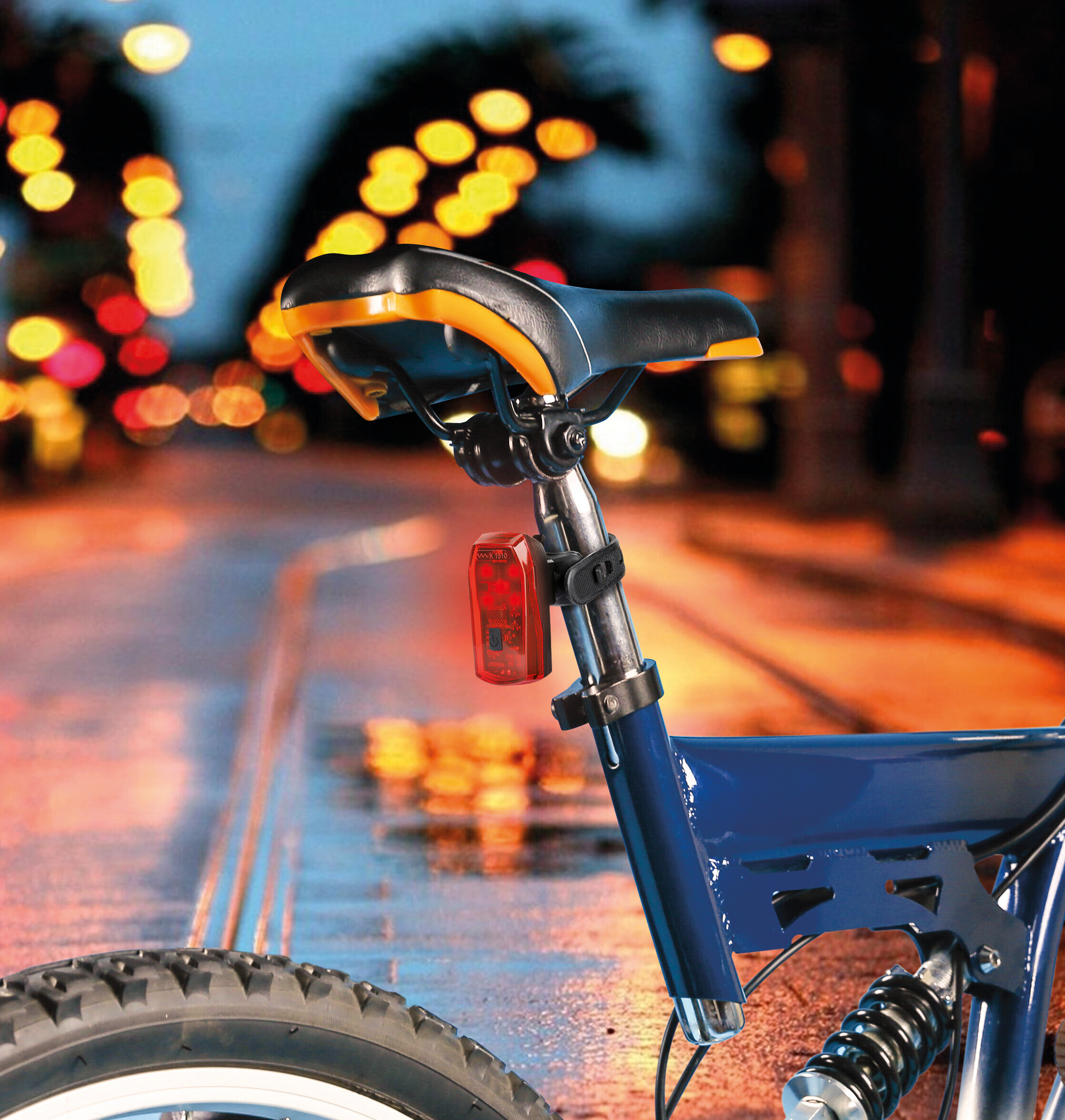• Accelerometro integrato che attiva la luce stop a 5 led per 2 secondi quando la bicicletta decelera
