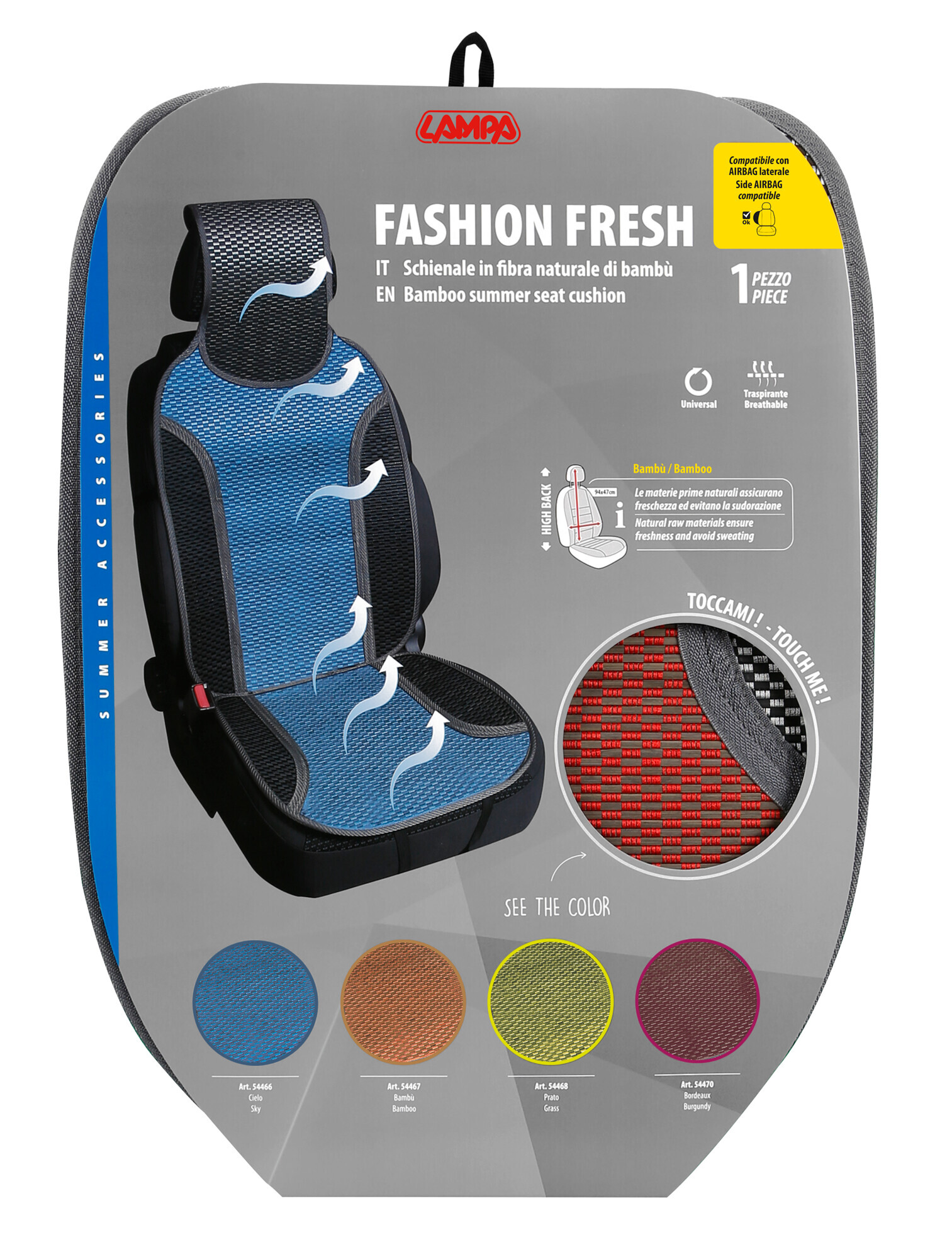 Fresco-Tech, schienale estivo in fibra naturale di bambù – Blu