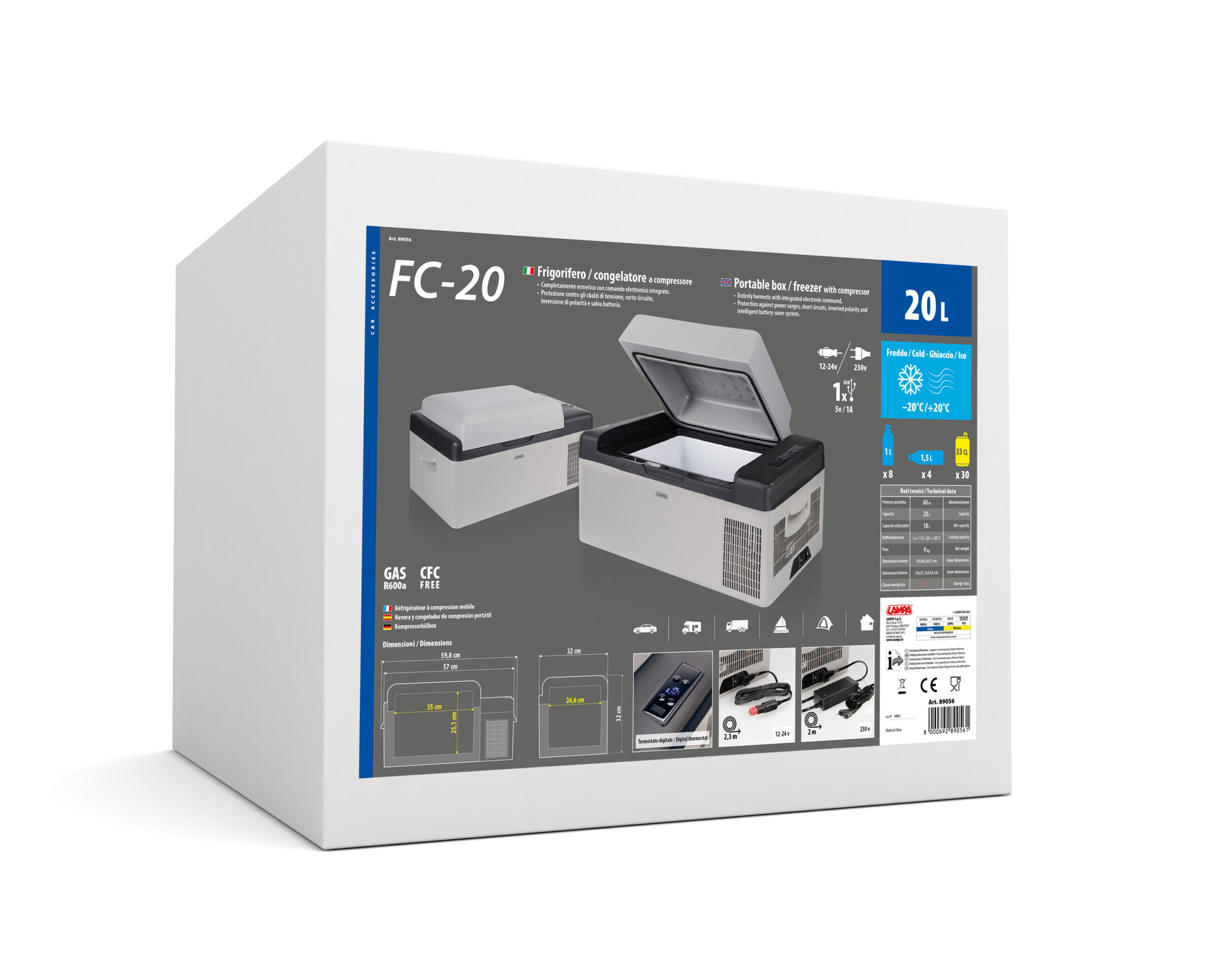 FC-20, frigorifero/congelatore a compressore, 20 litri, 12/24V + 220V