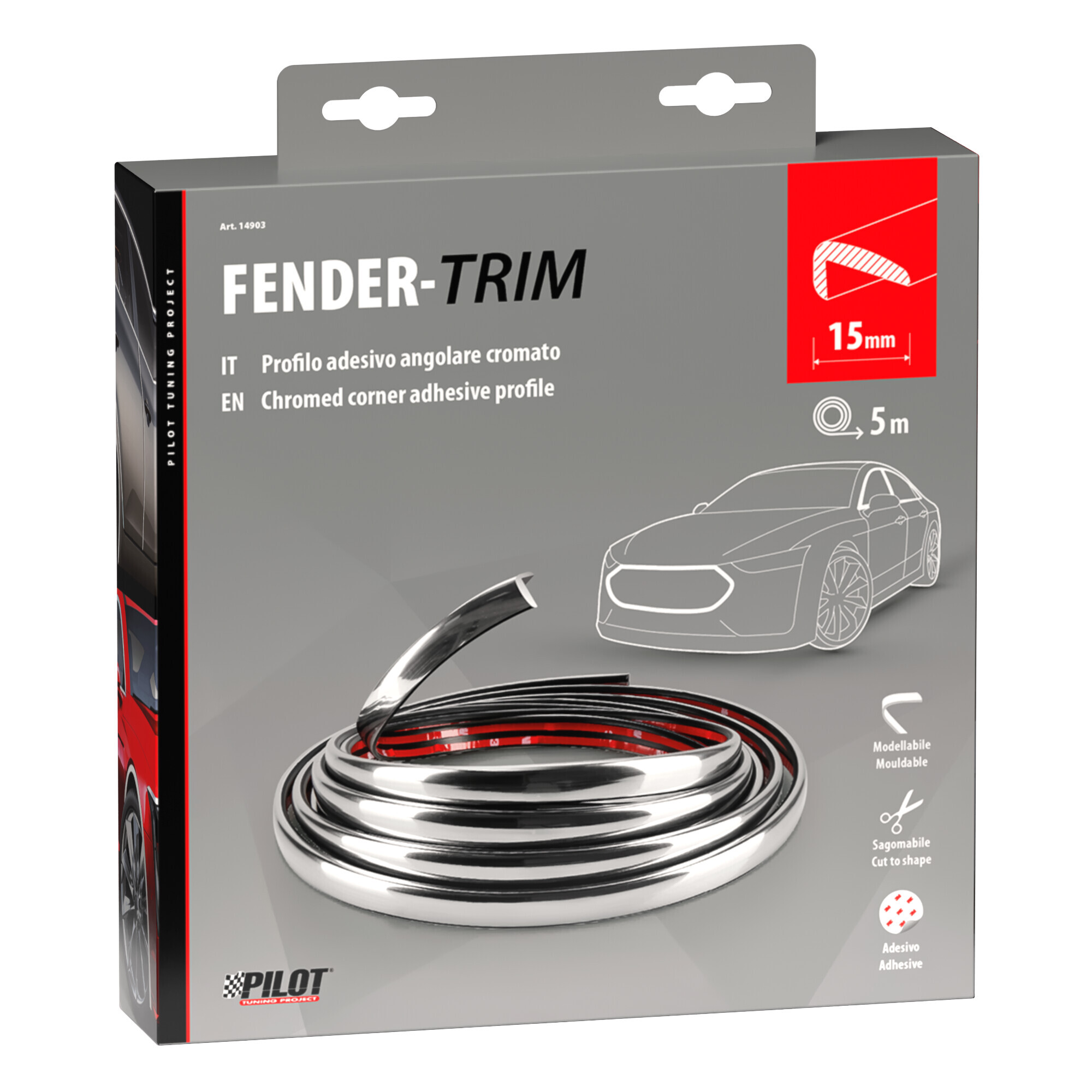Fender-Trim, profilo adesivo angolare cromato – 5 m – 15 mm