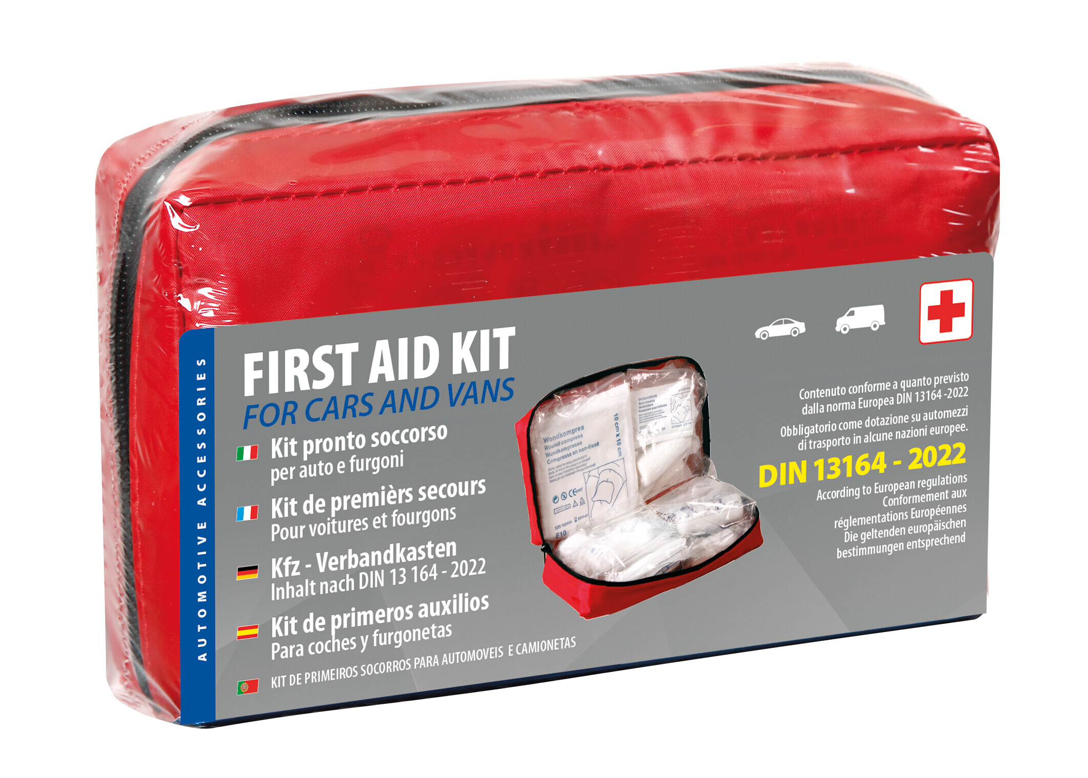 Kit pronto soccorso per auto e furgoni conforme alla norma europea DIN 13164 – 2022