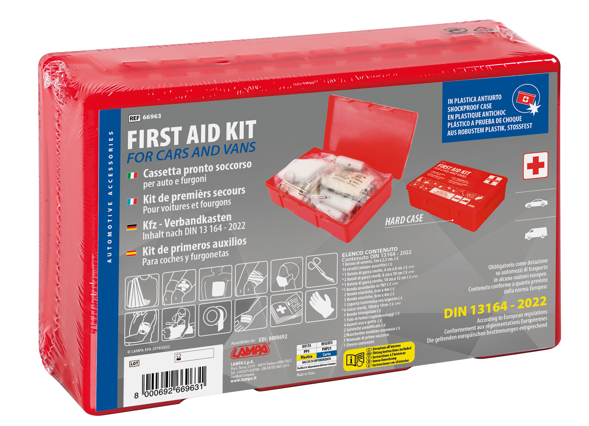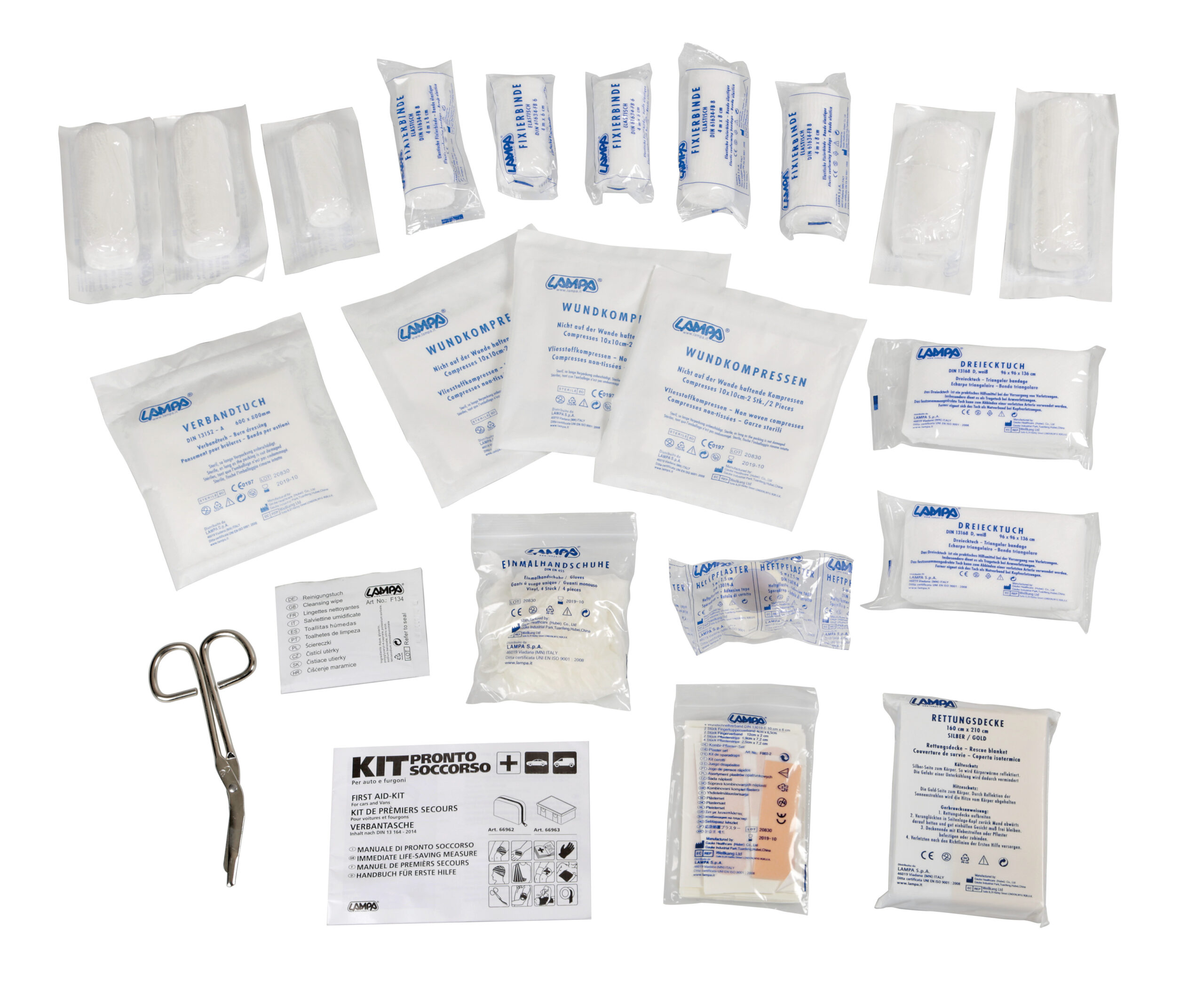 Kit pronto soccorso per auto e furgoni conforme alla norma europea DIN 13164 – 2022