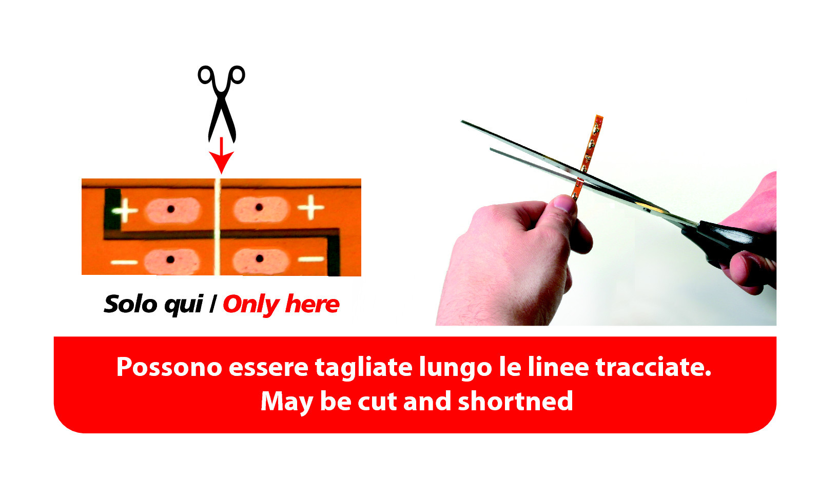 Strisce adesive a Led. Impermeabili, flessibili, ultrasottili, si inseriscono virtualmente in qualsiasi fessura. Basso assorbimento di corrente. Possono essere accorciate semplicemente tramite forbici