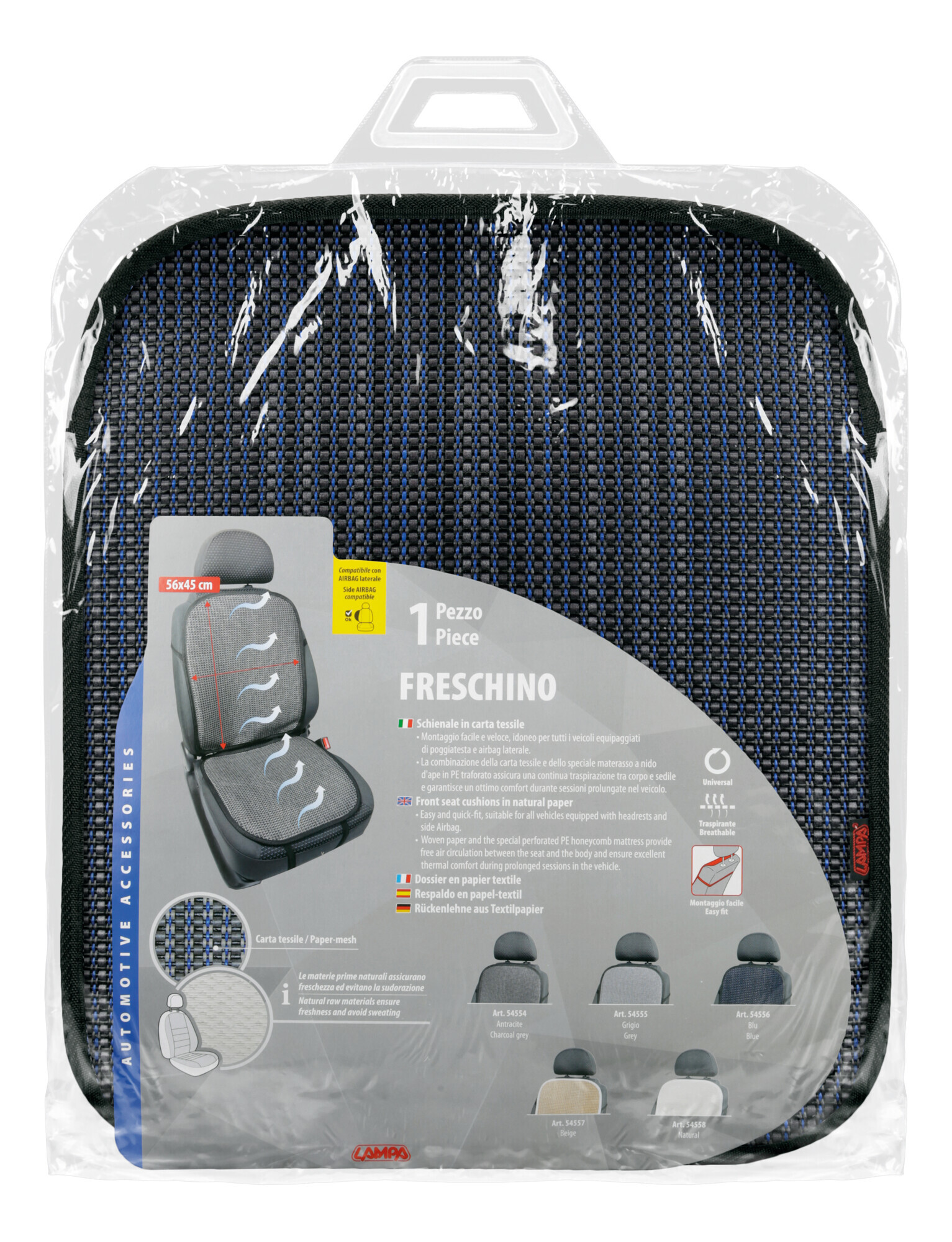 • La combinazione della carta tessile e dello speciale materasso a nido d’ape in PE traforato assicura una continua traspirazione tra corpo e sedile e garantisce un ottimo comfort durante sessioni prolungate nel veicolo