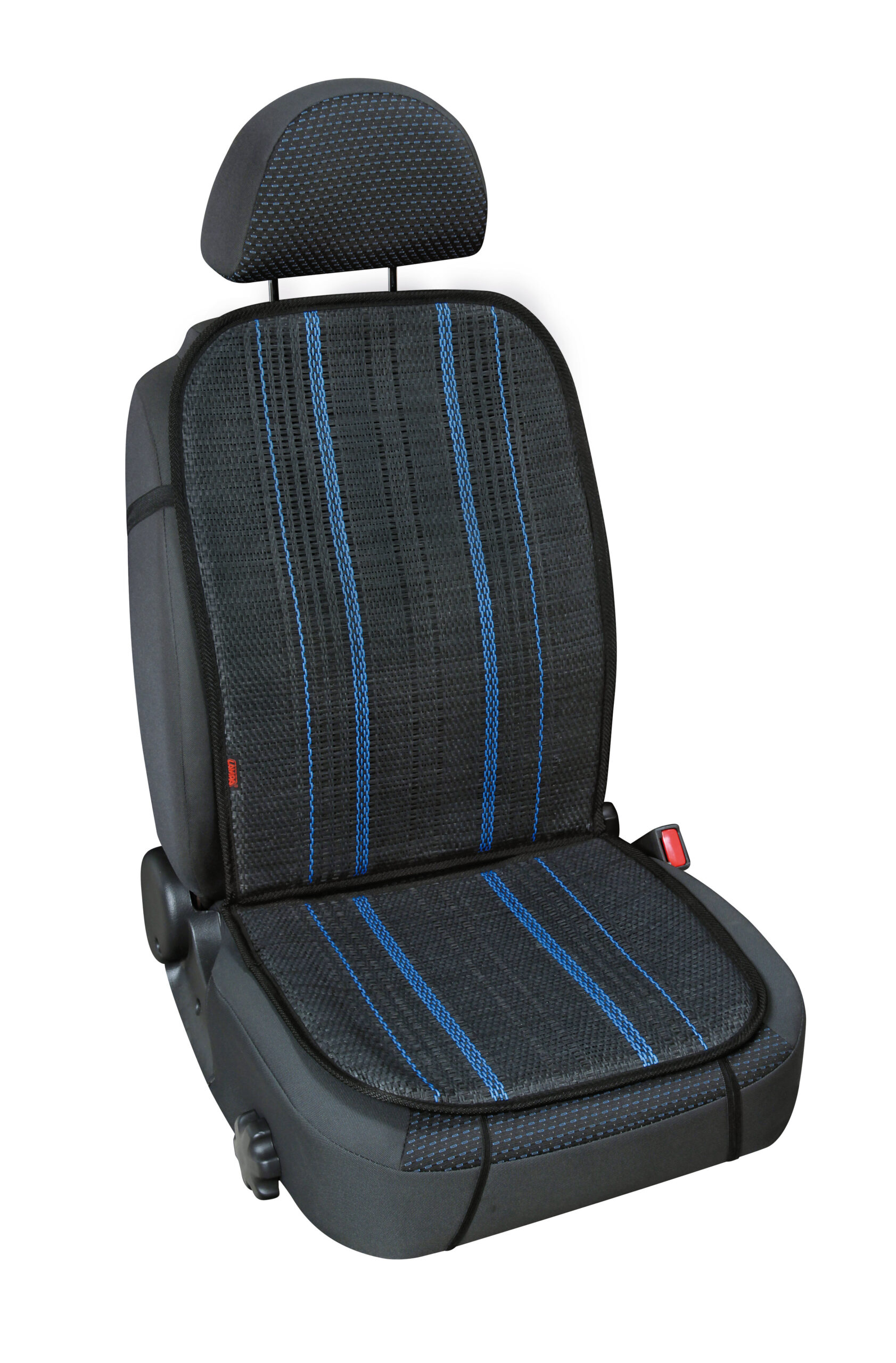 Fresco d’estate e caldo d’inverno. Nuova serie: schienale alto per adattarsi alle misure dei sedili di nuova generazione. Universale, si adatta facilmente ad ogni tipo di sedile e si fissa utilizzando le cinghie in dotazione. Idoneo anche per le vetture con l’airbag incorporato nel sedile