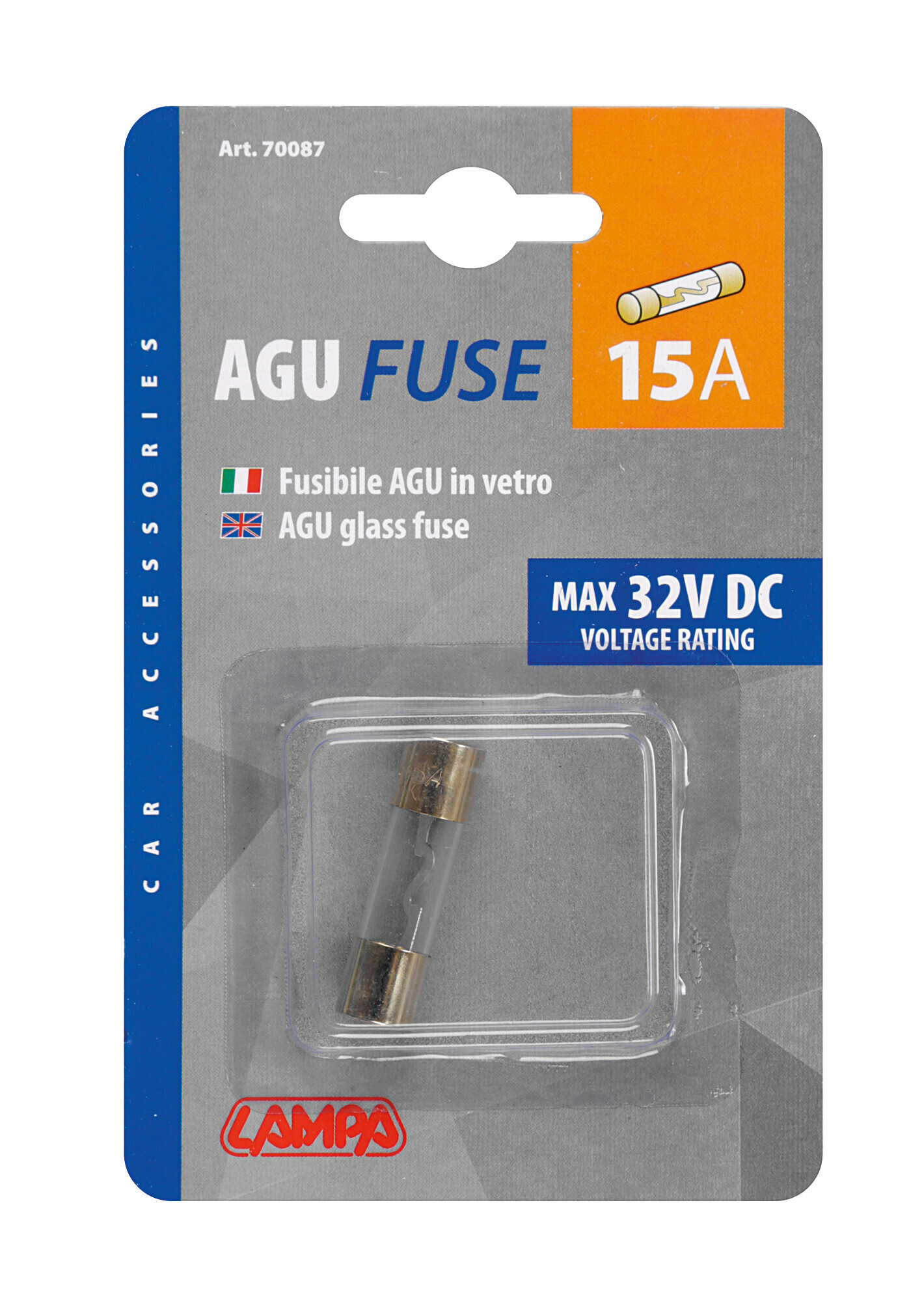 Fusibile AGU in vetro, 12/32V – 15A