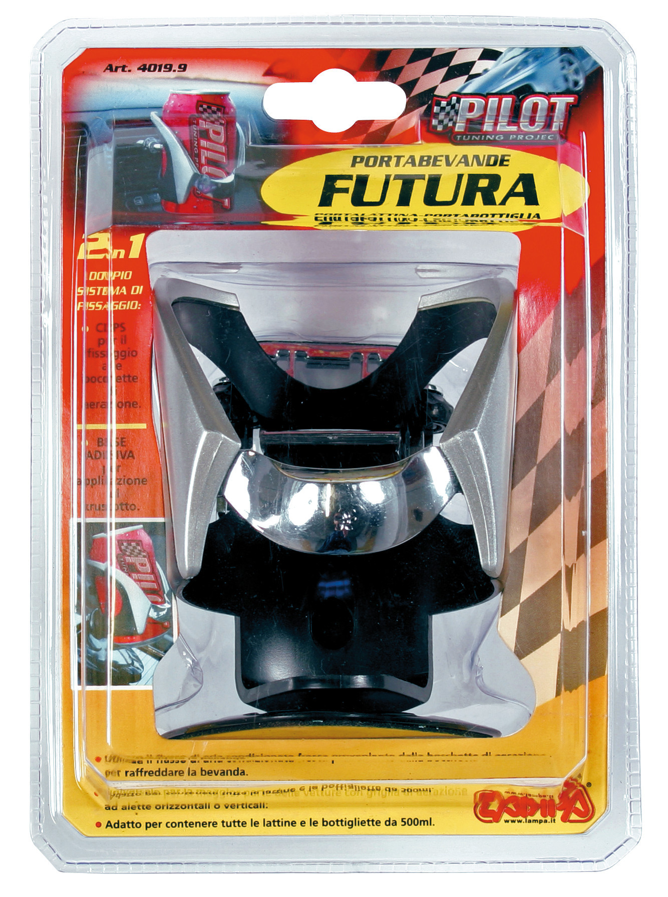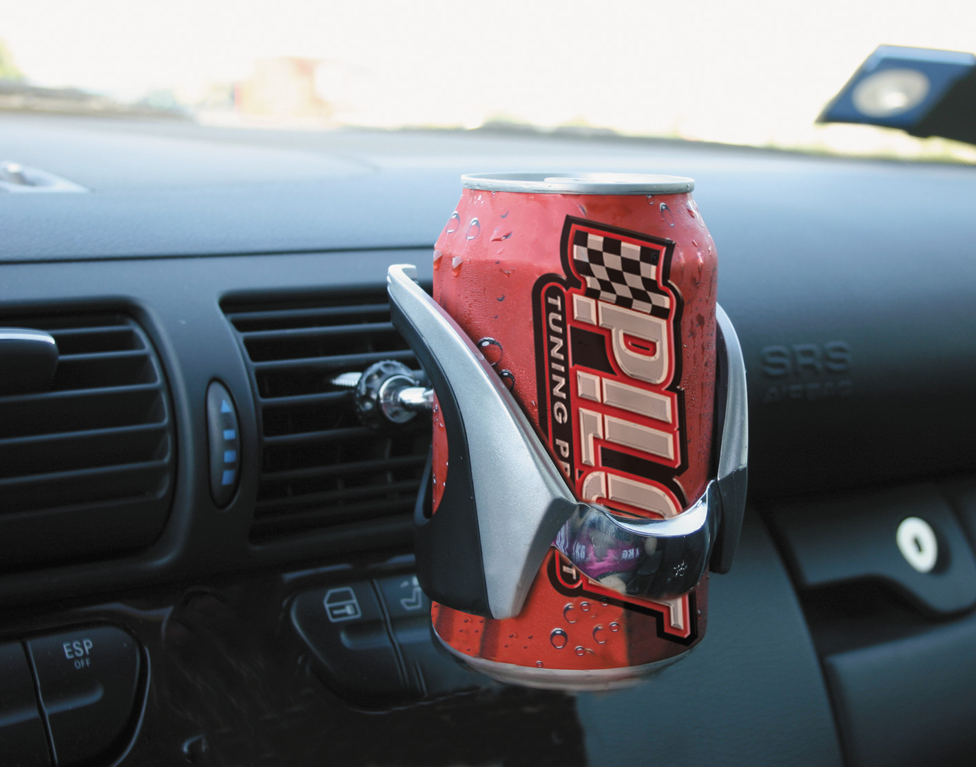 Fissaggio a clip o biadesivo. Sfrutta il flusso dell’aria condizionata per raffreddare le bevande. Contiene anche le bottigliette da 500 ml.