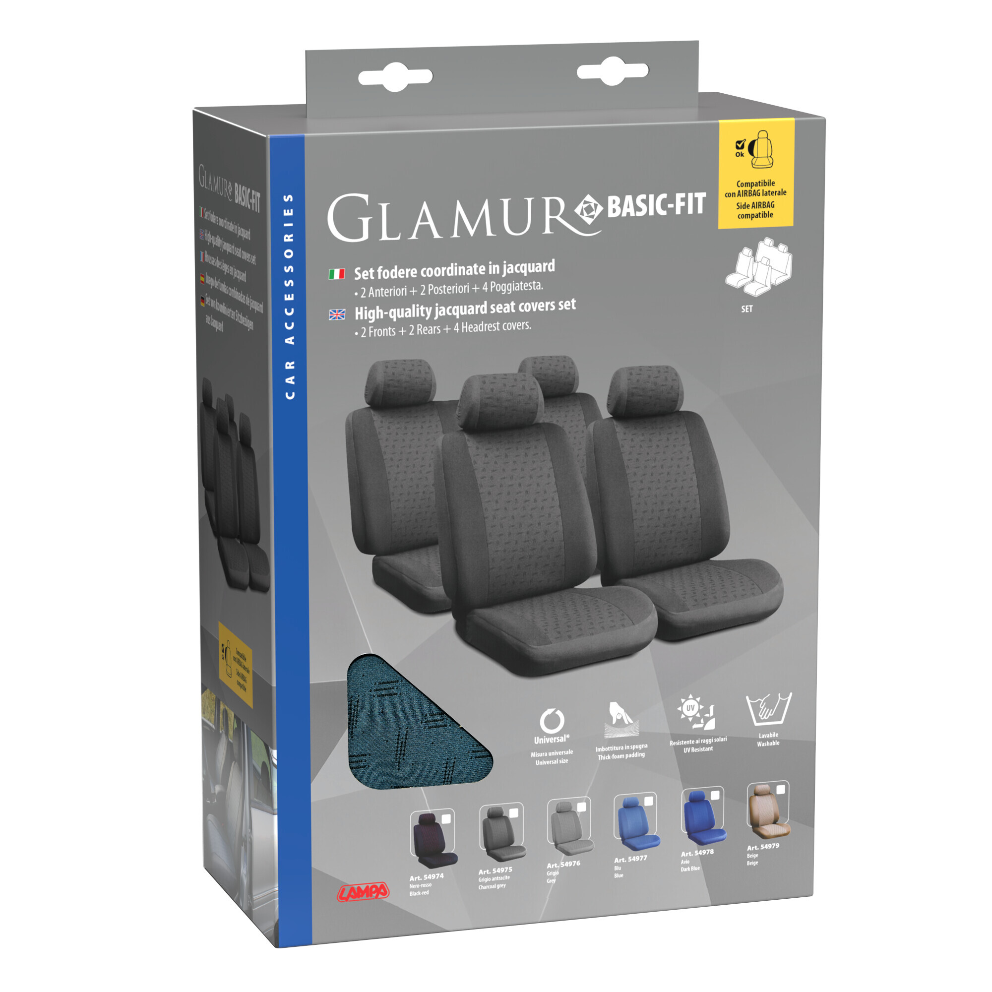 2 anteriori, 2 posteriori, 4 copripoggiatesta. Tessuto in poliestere e imbottiture in spugna