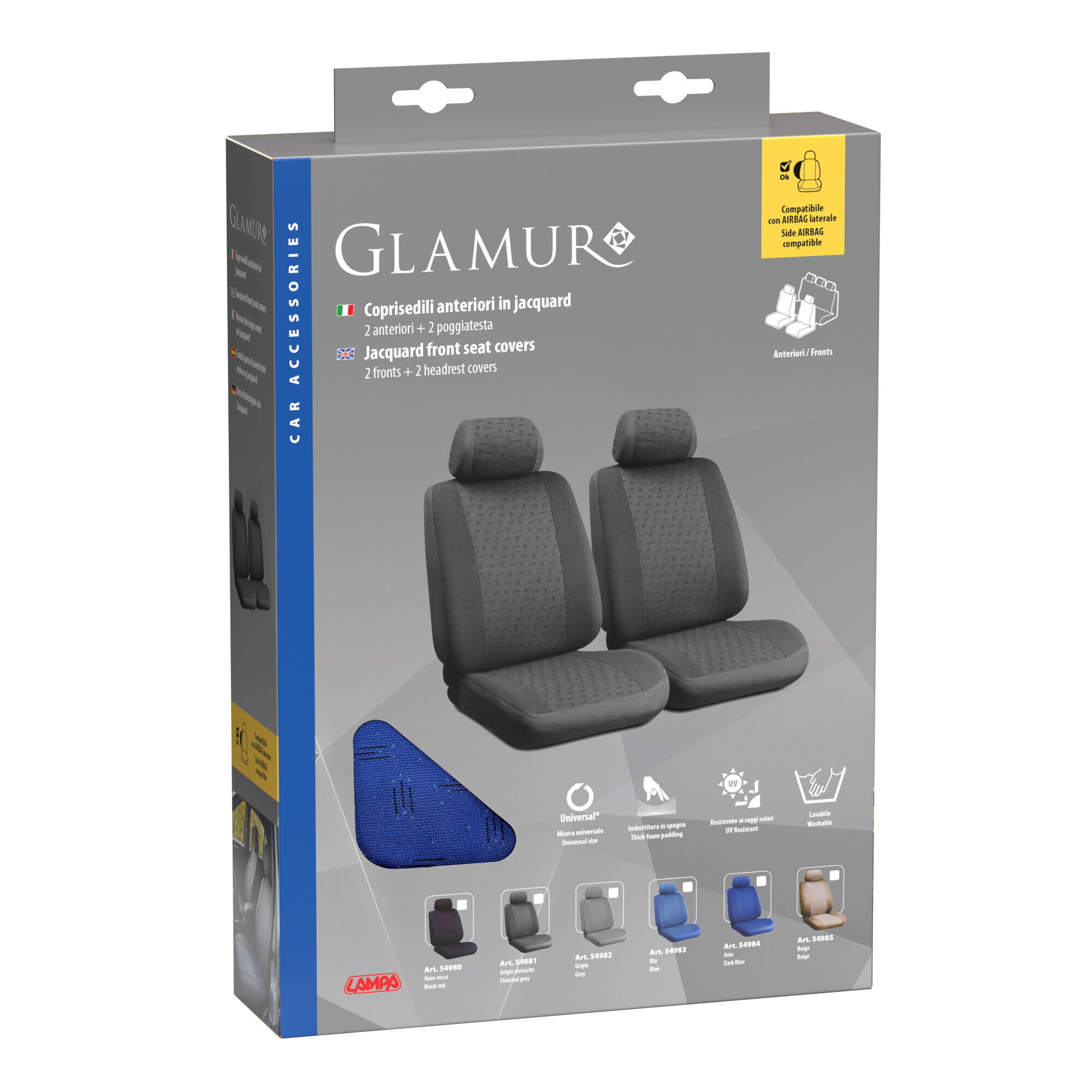 Glamur, coppia coprisedili anteriori in jacquard, universali – Blu