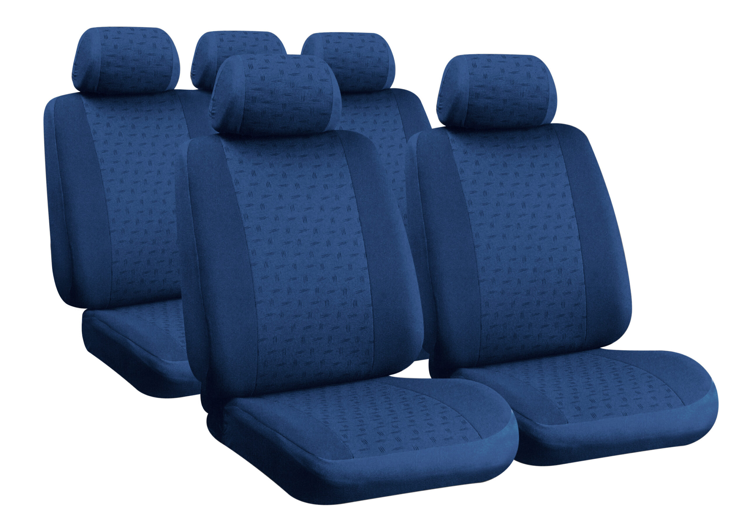 2 anteriori, 2 posteriori (con 3+3 cerniere), 5 copripoggiatesta. Tessuto in poliestere e imbottiture in spugna