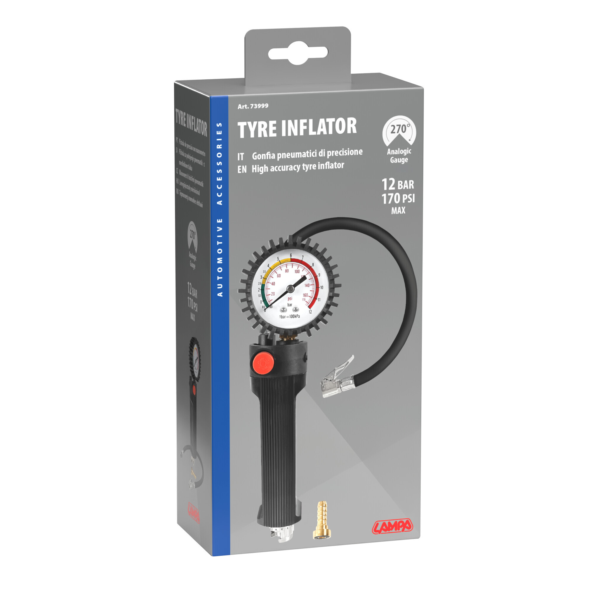 Gonfia pneumatici con manometro 270° di precisione – max 12 bar / 170 psi