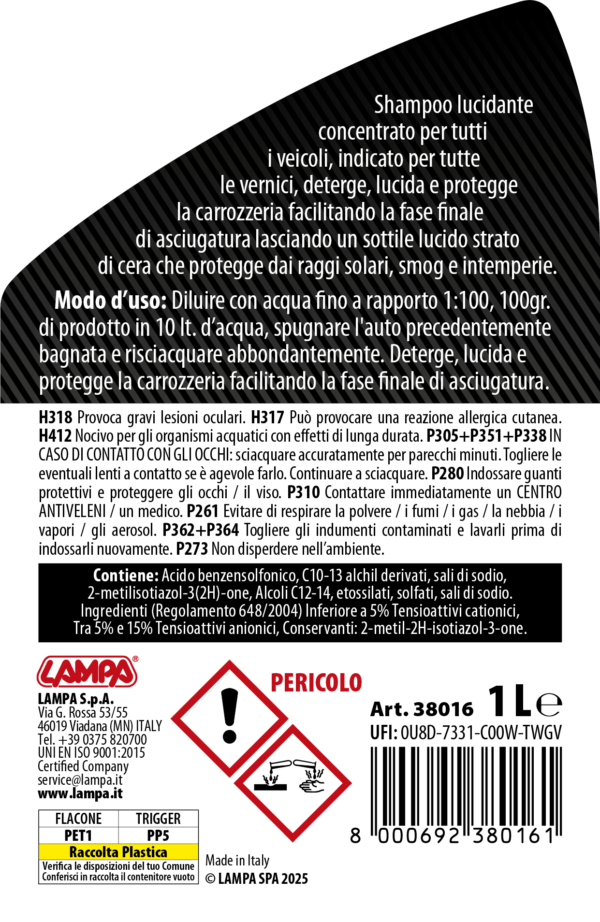 • Crema detergente profumata ad azione pulente e ravvivante dei colori per superfici in pelle sia naturale che sintetica.