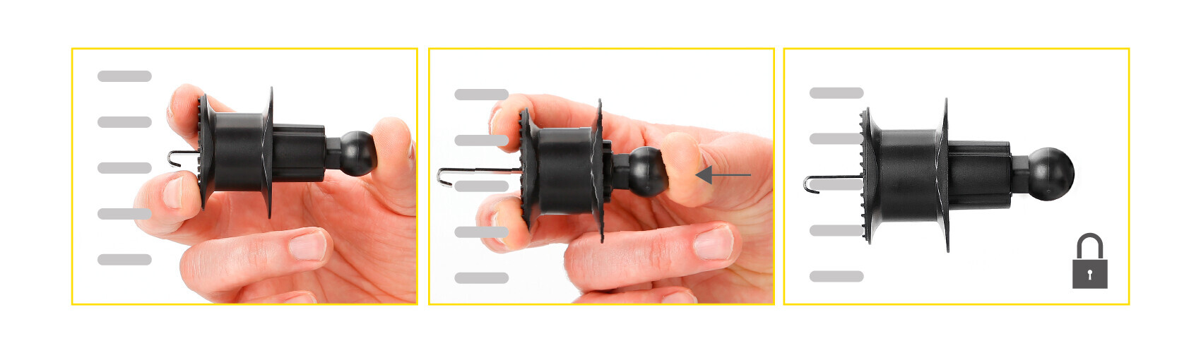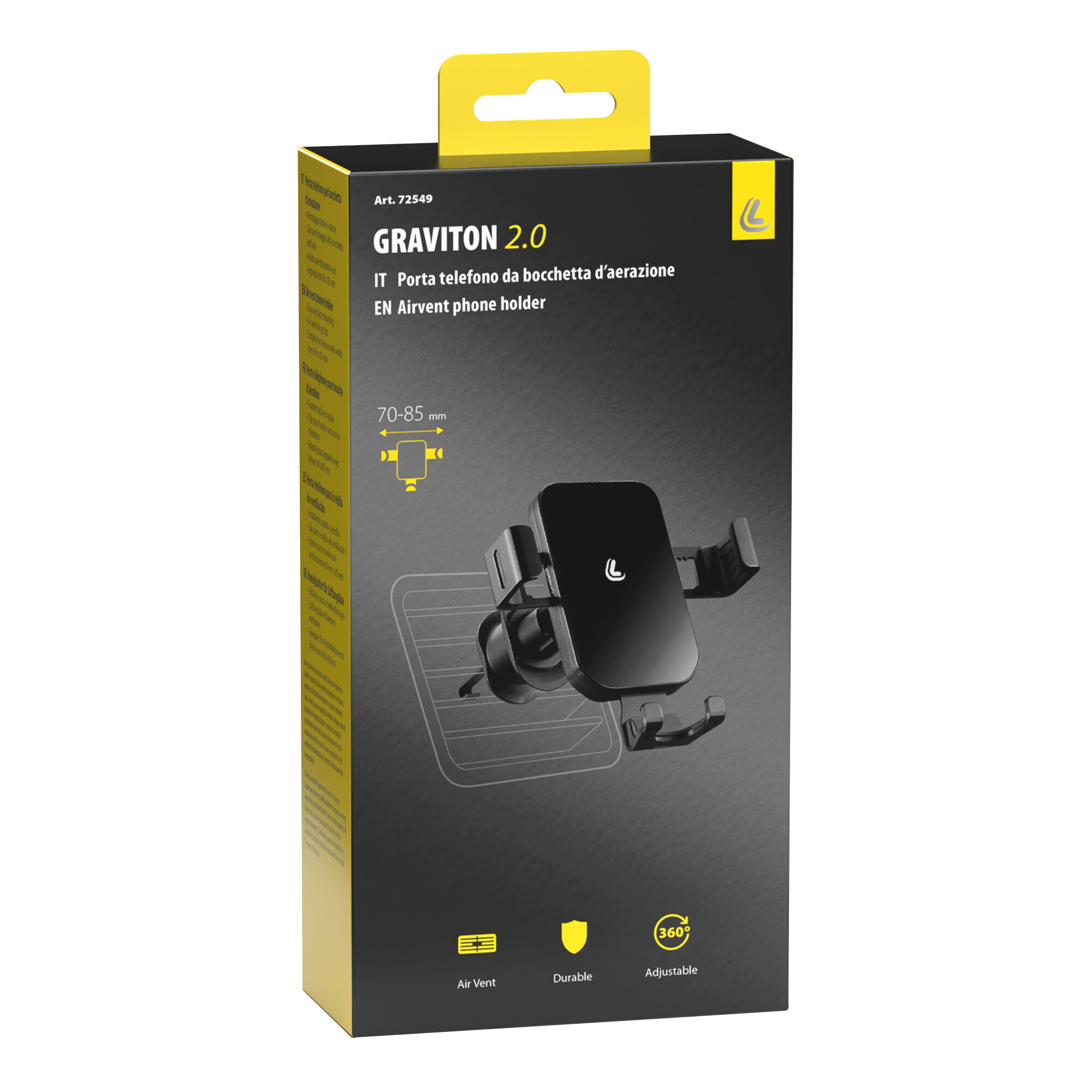 • Sistema “Push and hook” per un fissaggio rapido alle alette della bocchetta di aerazione.