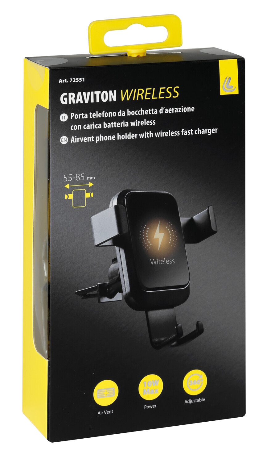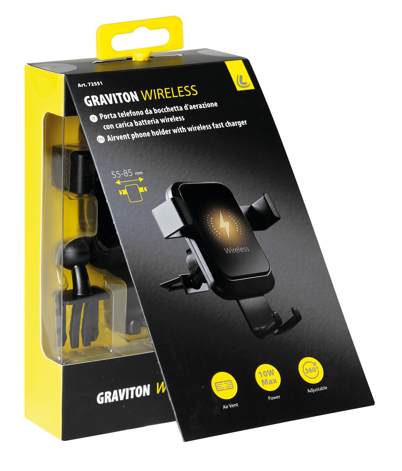 Graviton Wireless, porta telefono per bocchette d’aerazione con carica batteria wireless