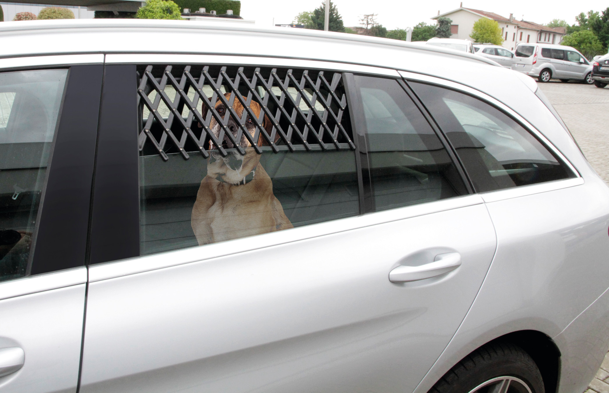 • Permette all’aria fresca di entrare all’interno dell’abitacolo e impedisce all’animale di sporgere la testa dal finestrino.