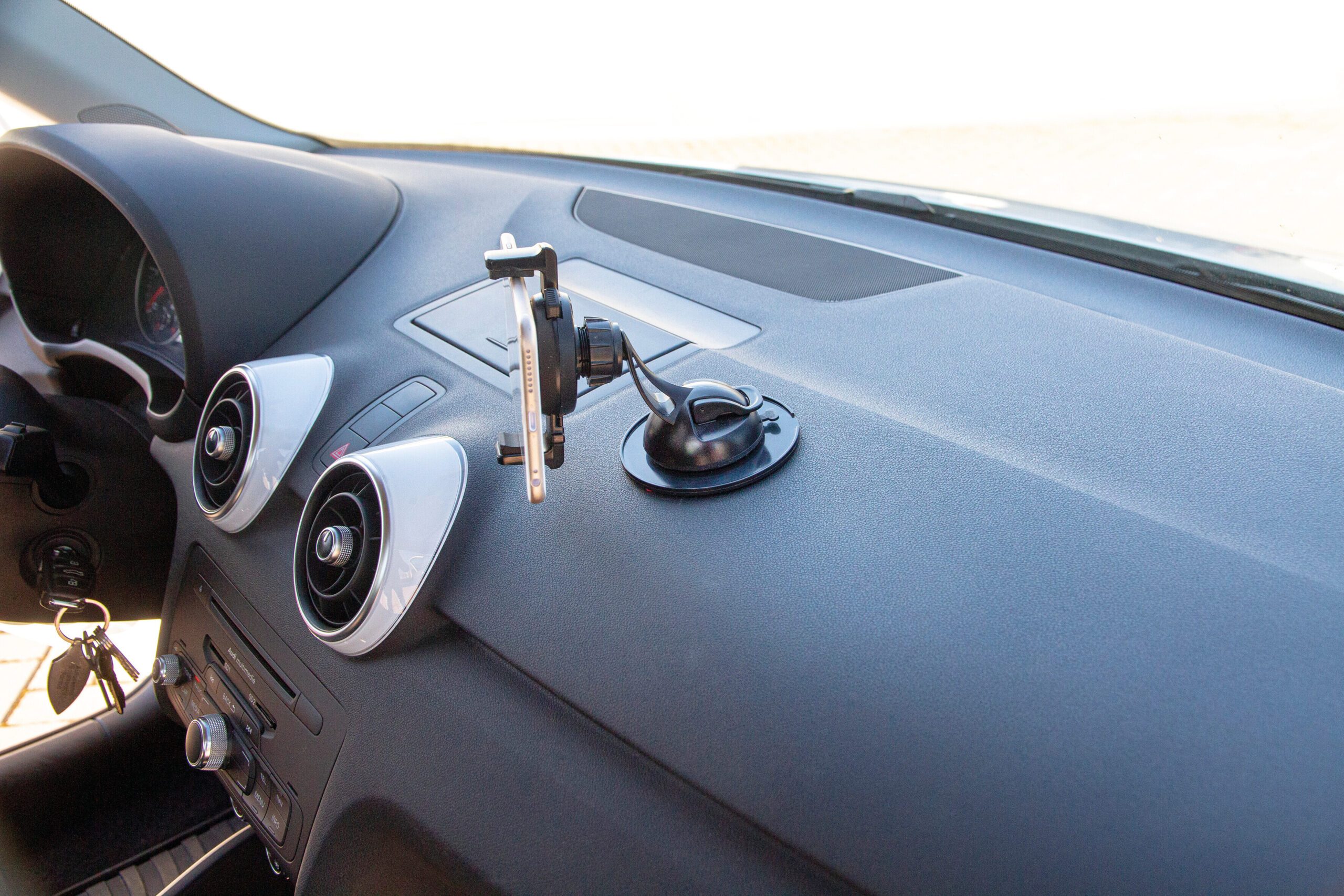• Si fissa facilmente al cruscotto tramite biadesivo incluso