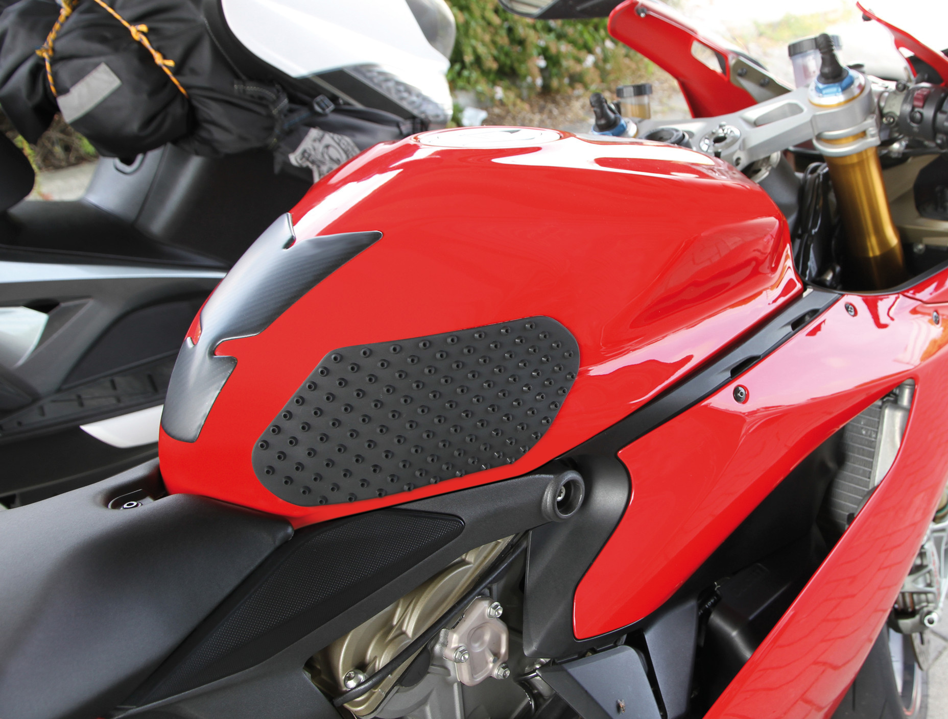 Si applicano in pochi secondi. Proteggono il serbatoio dai graffi causati dallo sfregamento delle gambe. Aiutano a ridurre l’affaticamento durante le frenate.