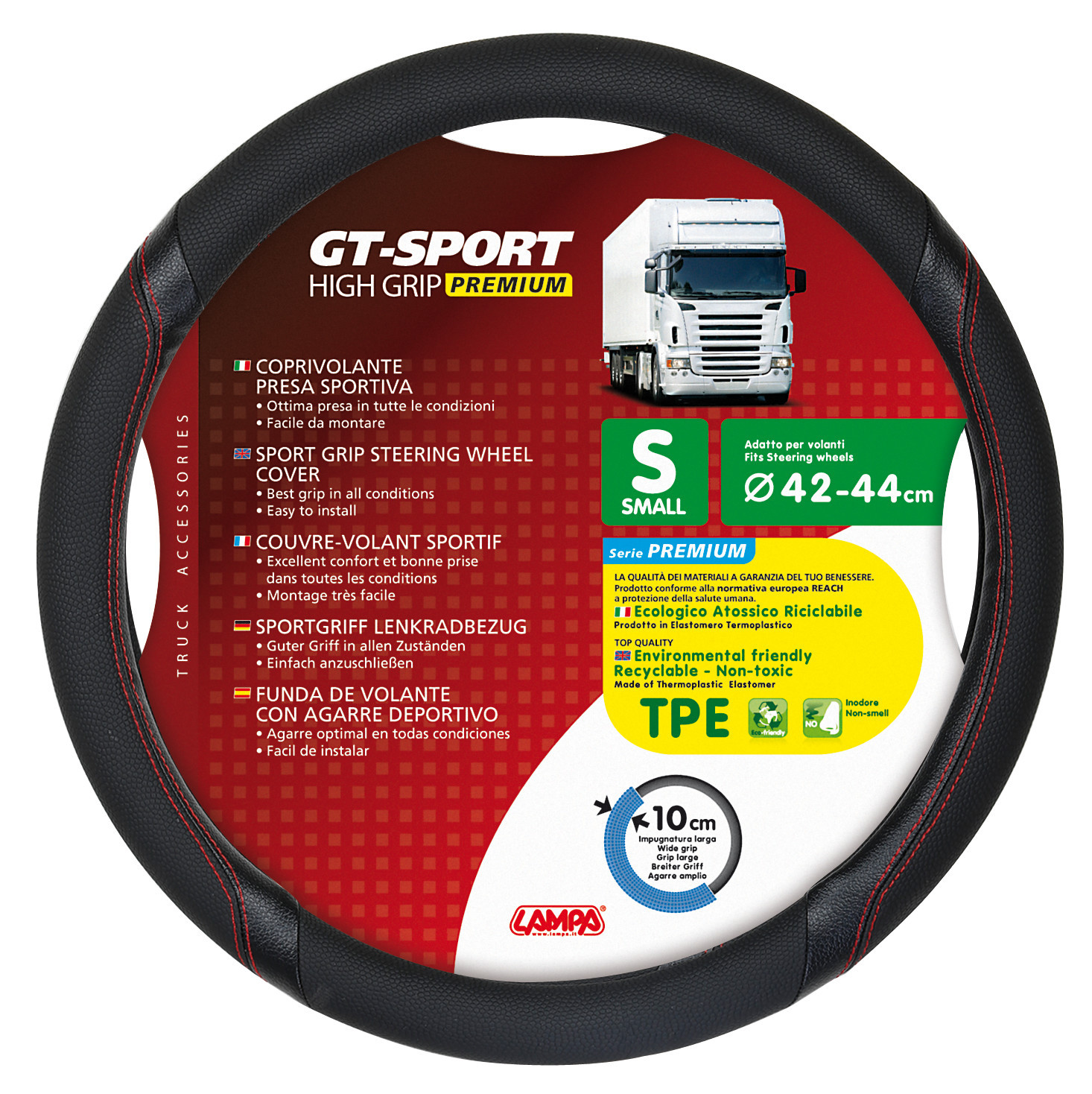 GT-Sport, coprivolante in Skeentex – S – Ø 42/44 cm – Nero/Rosso