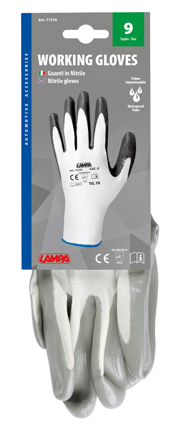 Guanti con palmo ricoperto in nitrile, supporto a filo continuo, senza cuciture. Ottima aderenza, sensibilità e morbidezza, ideali per la conduzione di automezzi, carico e scarico merci, settore agricolo, meccanico, metalmeccanico, lavori di precisione…