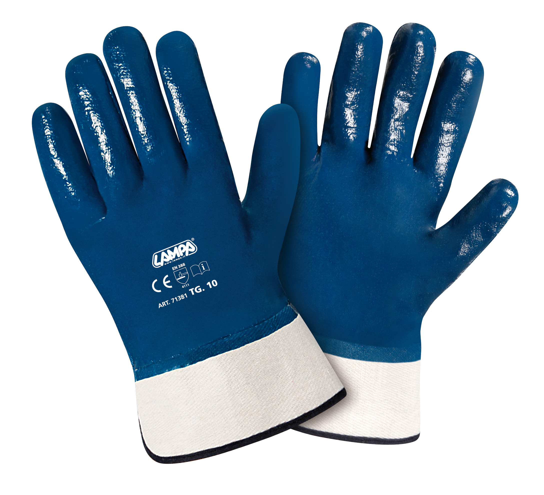 Guanti con palmo e dorso ricoperti in nitrile, manicotto in tela. Ottima aderenza, sensibilità e morbidezza, ideali per la conduzione di automezzi, carico e scarico merci, settore agricolo, meccanico, metalmeccanico…