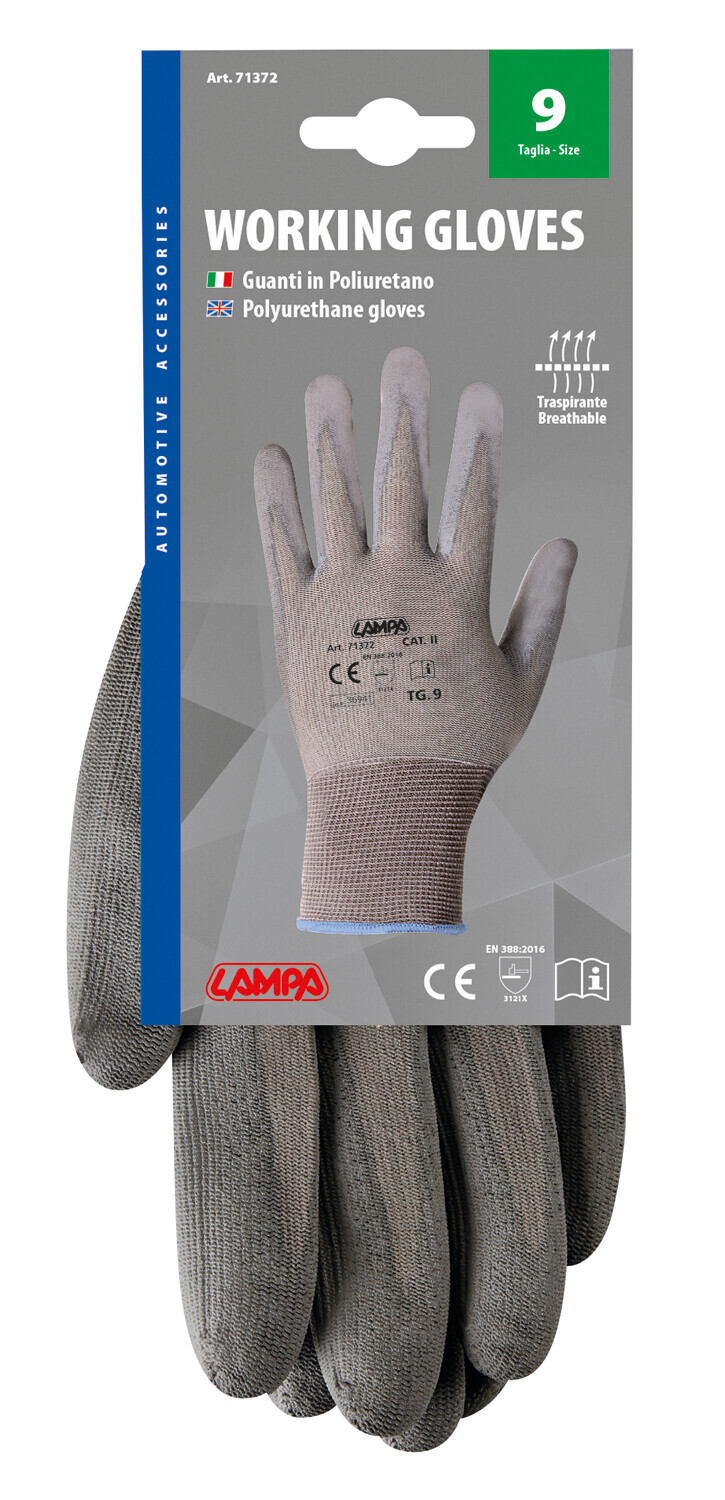 Guanti in filato elastico con palmo ricoperto in poliuretano. Ottima aderenza, sensibilità e morbidezza, ideali per la conduzione di automezzi, carico e scarico merci, settore agricolo, meccanico, metalmeccanico, lavori di precisione…
