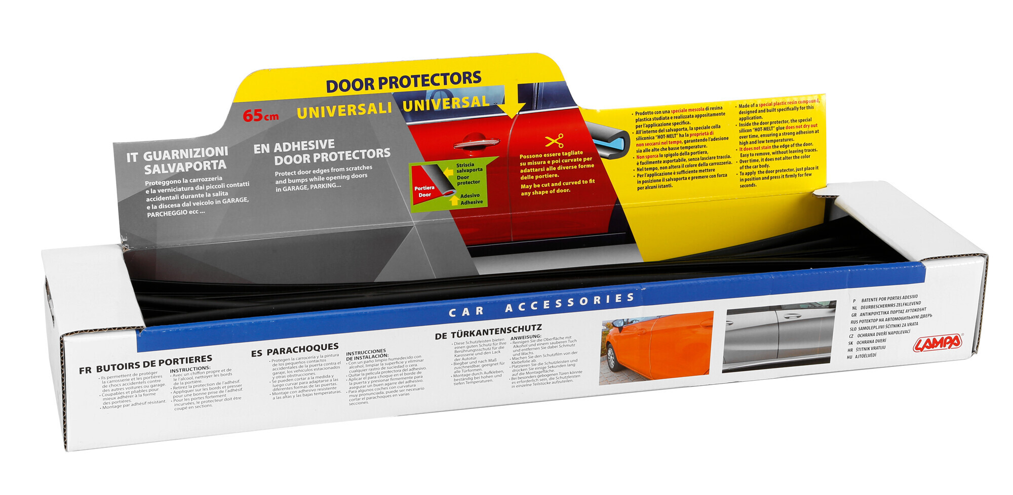 Proteggono la carrozzeria e la verniciatura dai piccoli contatti accidentali alle portiere del veicolo.