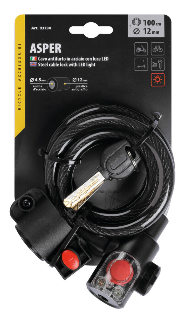 Asper, cavo antifurto in acciaio con luce Led – Ø 12 mm – 100 cm