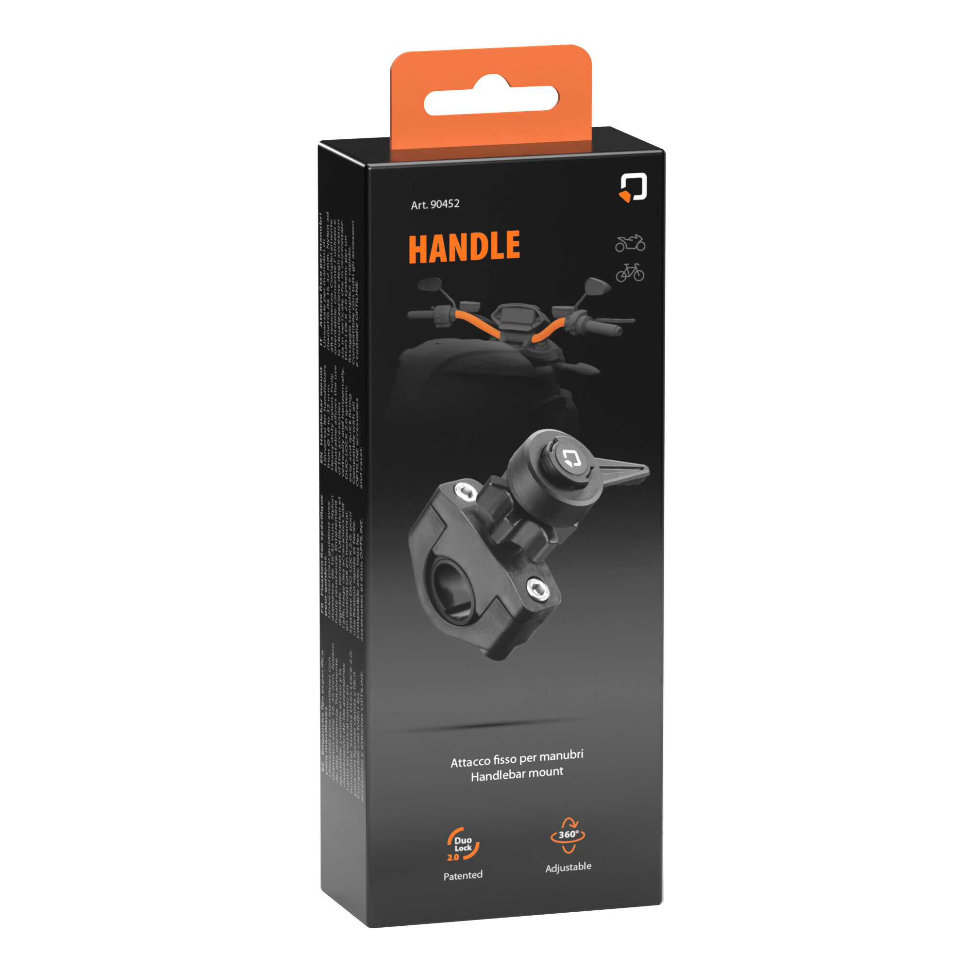 Universale per manubri di diametro da 16-32 mm. Nylon ad alta resistenza. Completamente orientabile: consente l’ utilizzo e la visualizzazione degli accessori sia in verticale che in orizzontale. Duo-Lock 2.0 system: per un fissaggio semplice e rapido. Compatibile con tutti gli accessori e custodie Optiline.